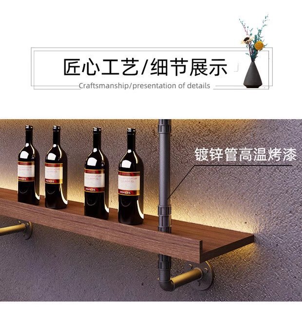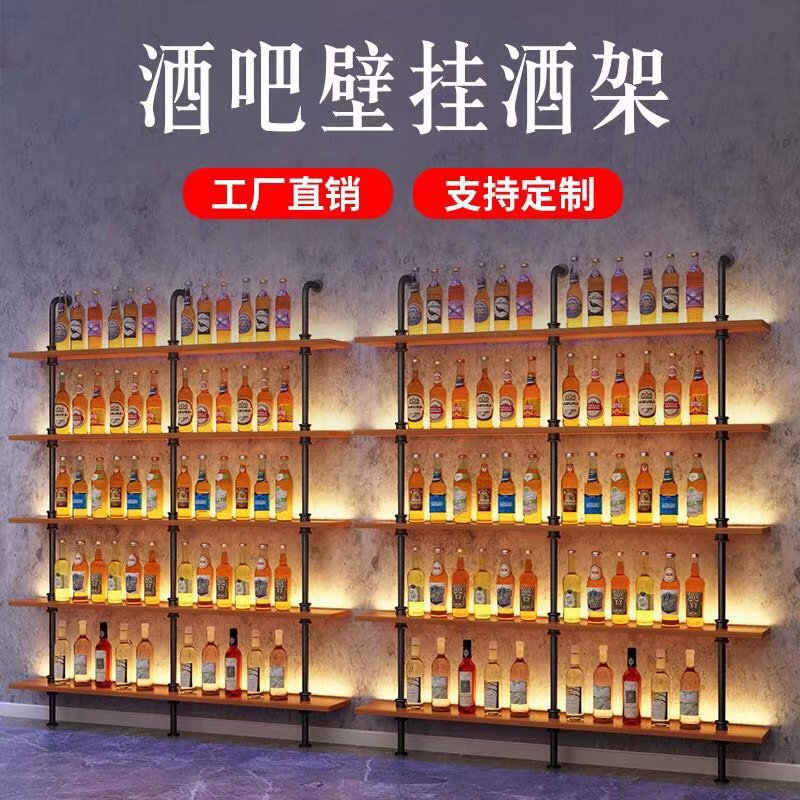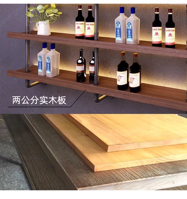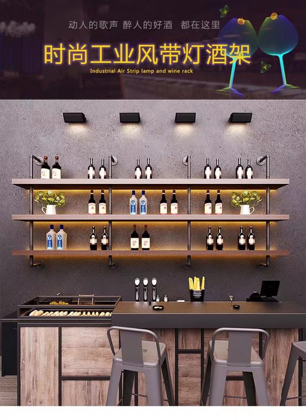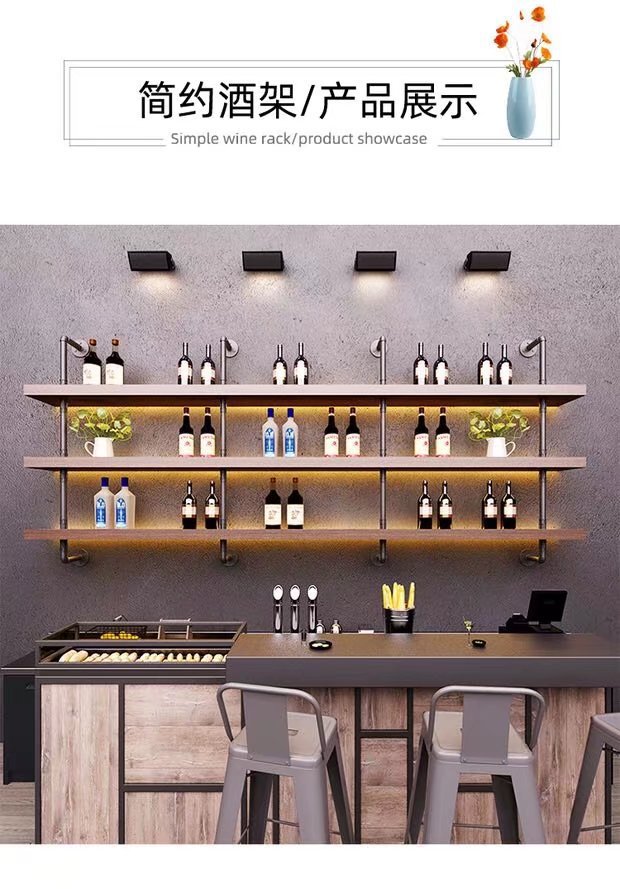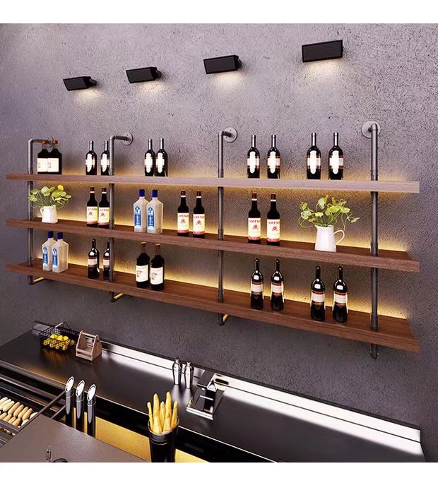 미국식 철제 벽걸이 와인랙 상점 매장 원목 선반 인기 바 음악 바 벽면 수납