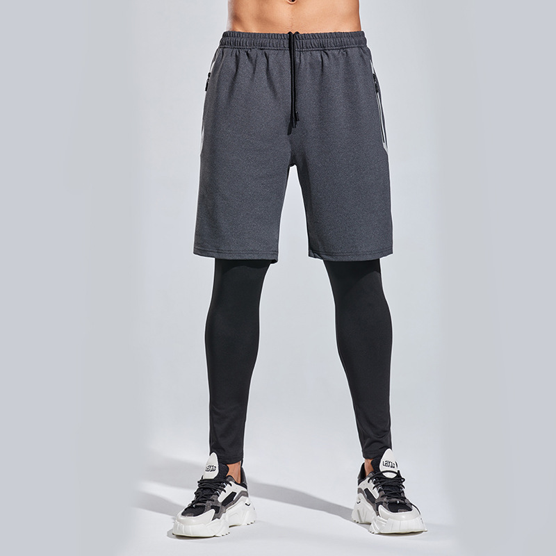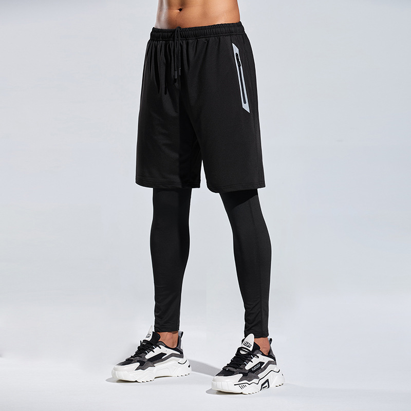 스포츠 가짜 투피스 피트니스 바지 남성용 속건 바지 가을과 겨울 바지 러닝 타이트 스트레치 트레이닝 남성용 바지