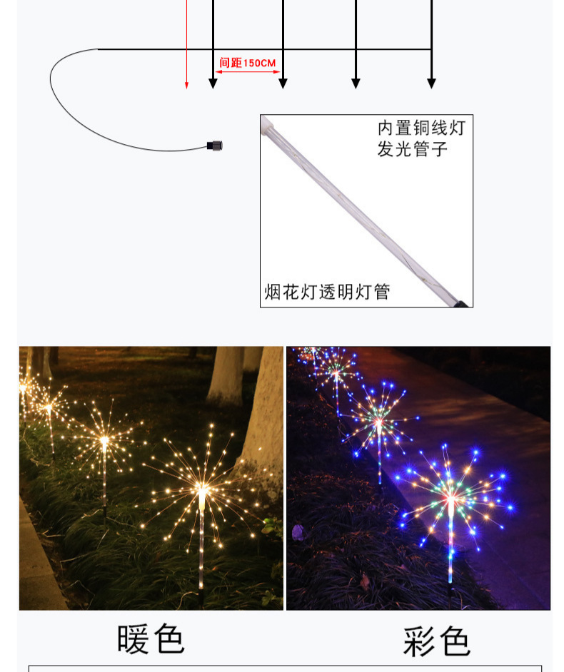 국경 간 LED 태양 문자열 구리 와이어 불꽃 놀이 램프 야외 바닥 잔디 램프 정원 안뜰 장식 분위기 램프