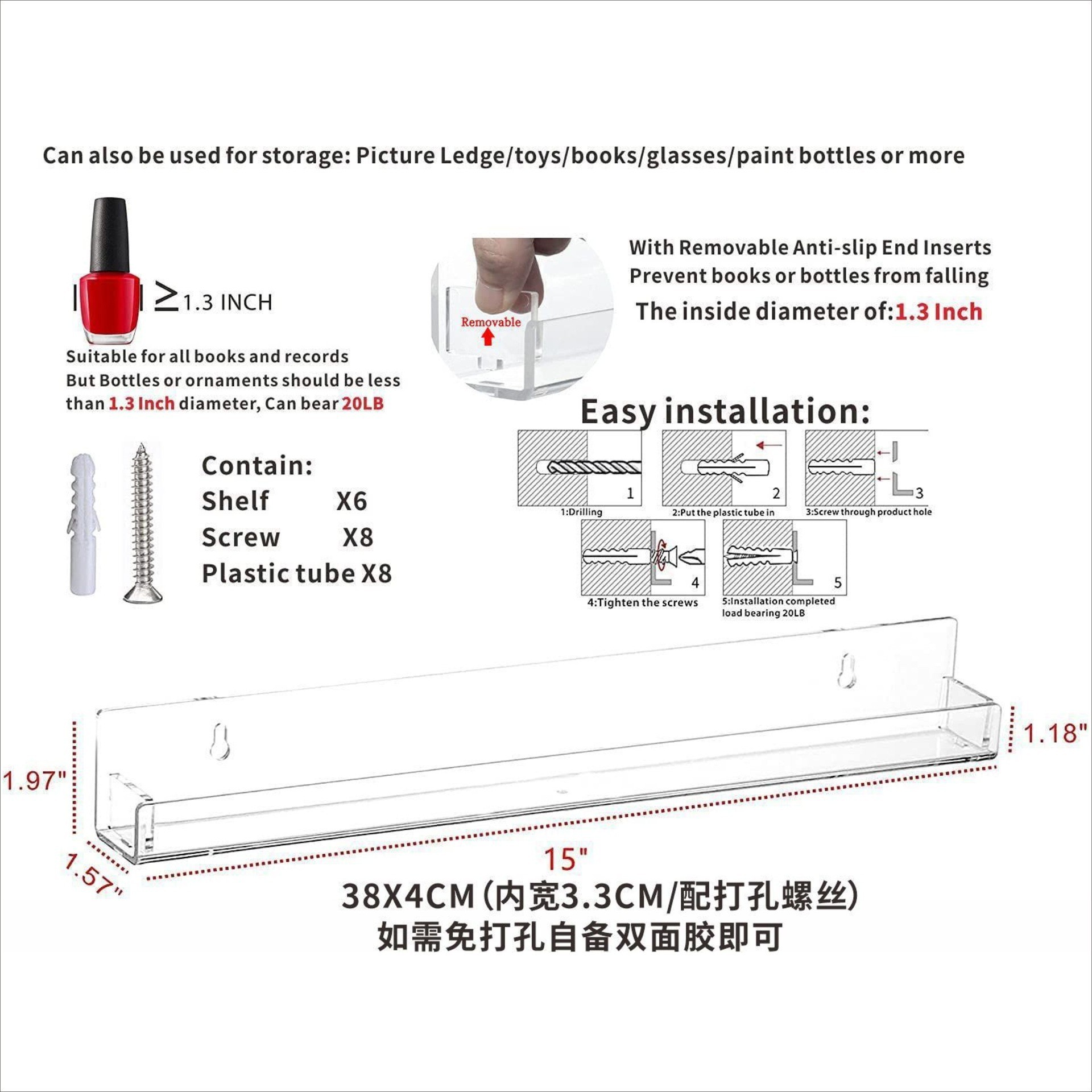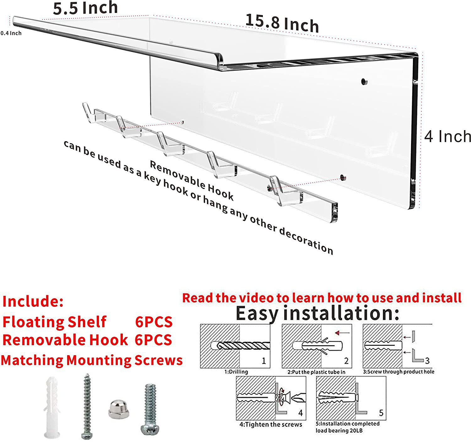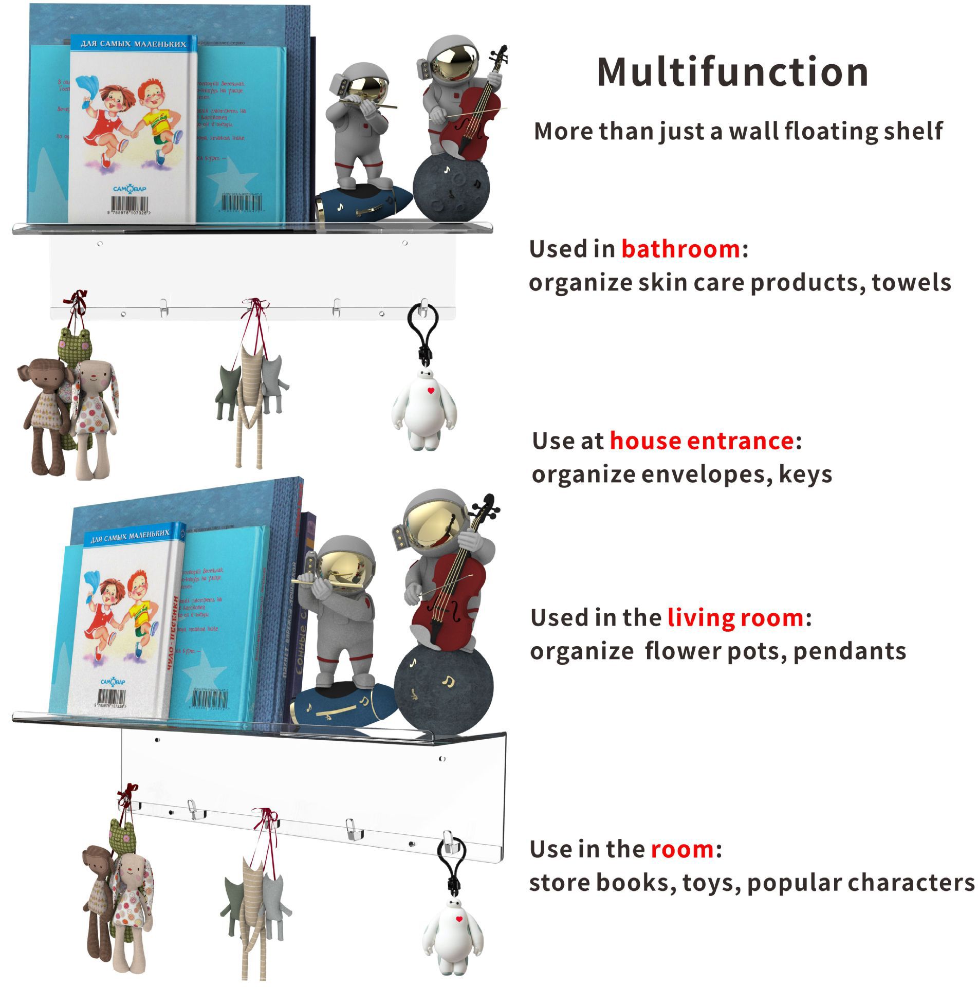아마존 벽걸이 형 책장 아크릴 투명 스토리지 랙 U 자형 스토리지 랙 벽걸이 형 어린이 책장