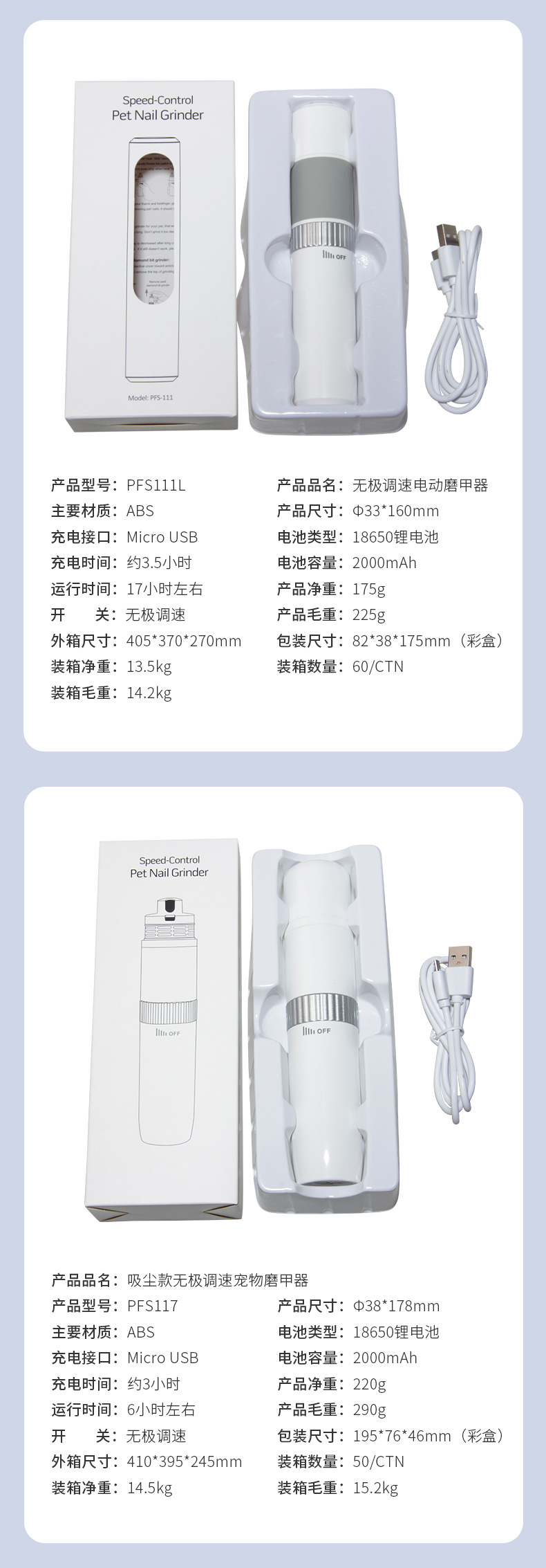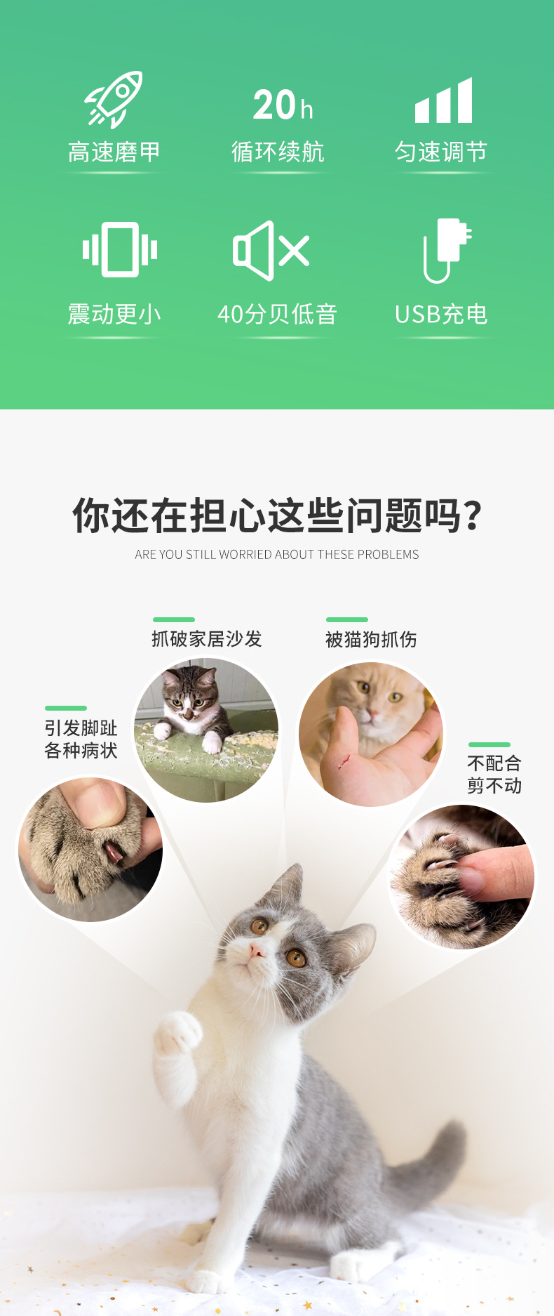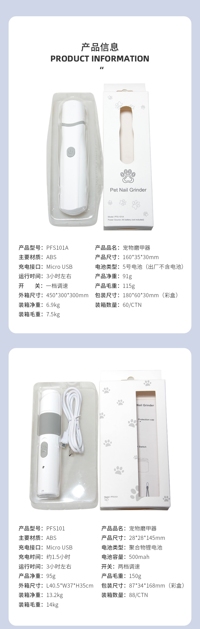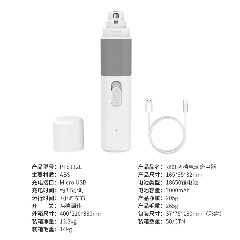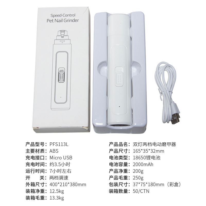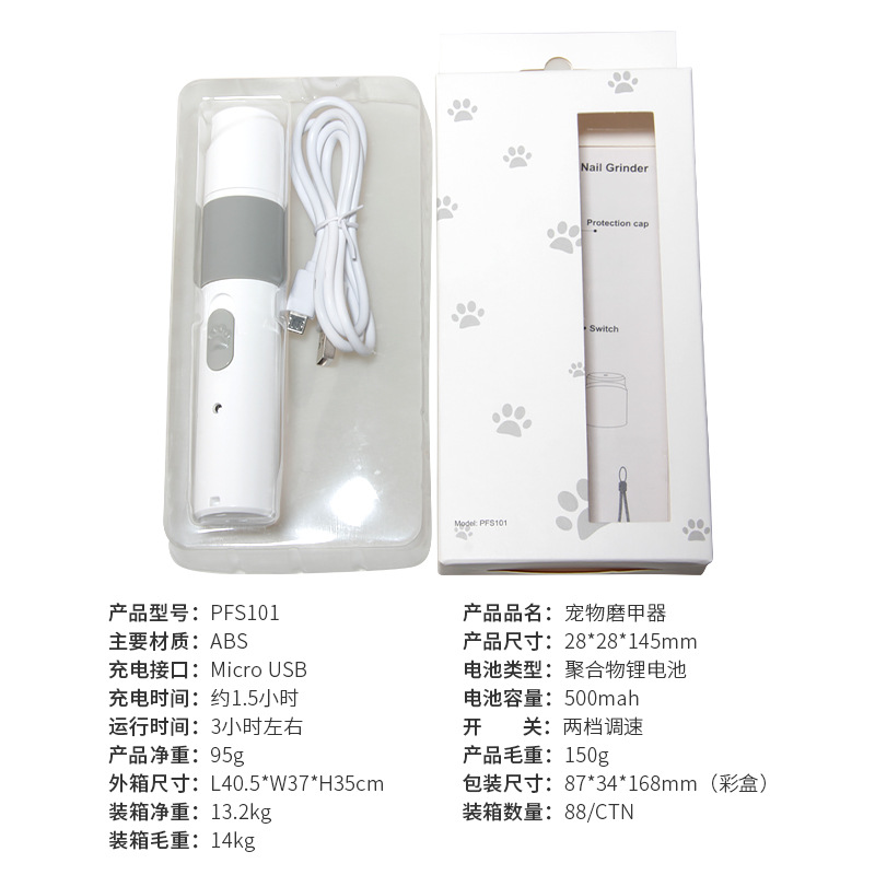 국경 간 신제품 애완 동물 네일 그라인더 USB 충전 가벼운 고양이와 강아지 전기 손톱 트리머 손톱깎이 청소 용품스토어 가기