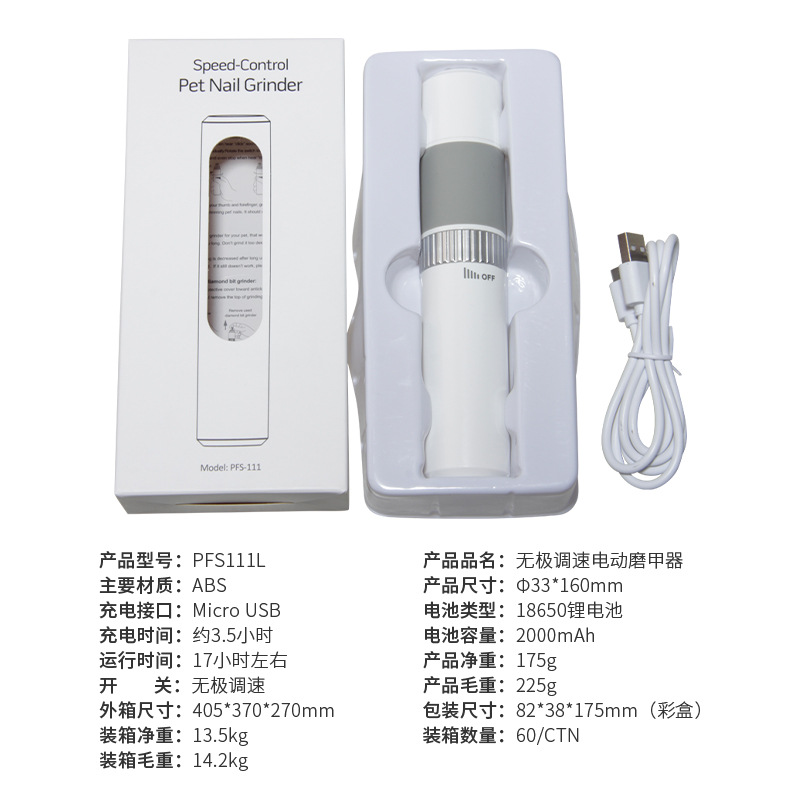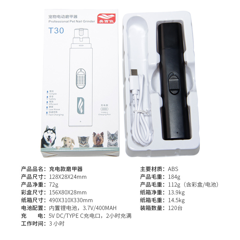 국경 간 신제품 애완 동물 네일 그라인더 USB 충전 가벼운 고양이와 강아지 전기 손톱 트리머 손톱깎이 청소 용품