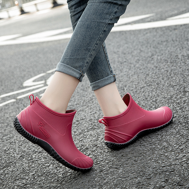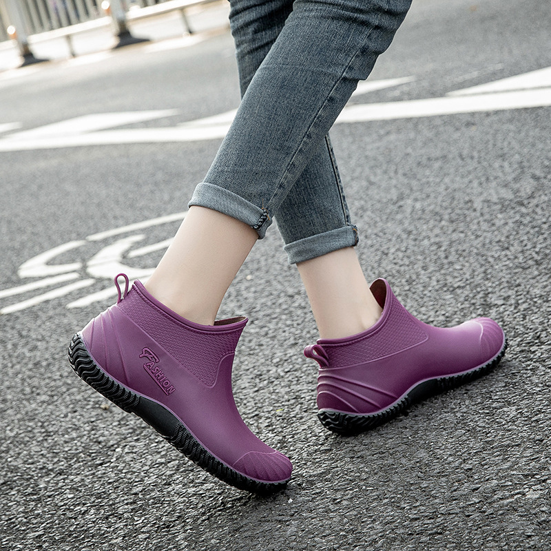 여성용 장화 새로운 패션 한국식 겉옷 미끄럼 방지 및 내마모성 여성용 워터 슈즈 플러스 벨벳 따뜻한 탈착식 로우 탑 여성용 장화스토어 가기