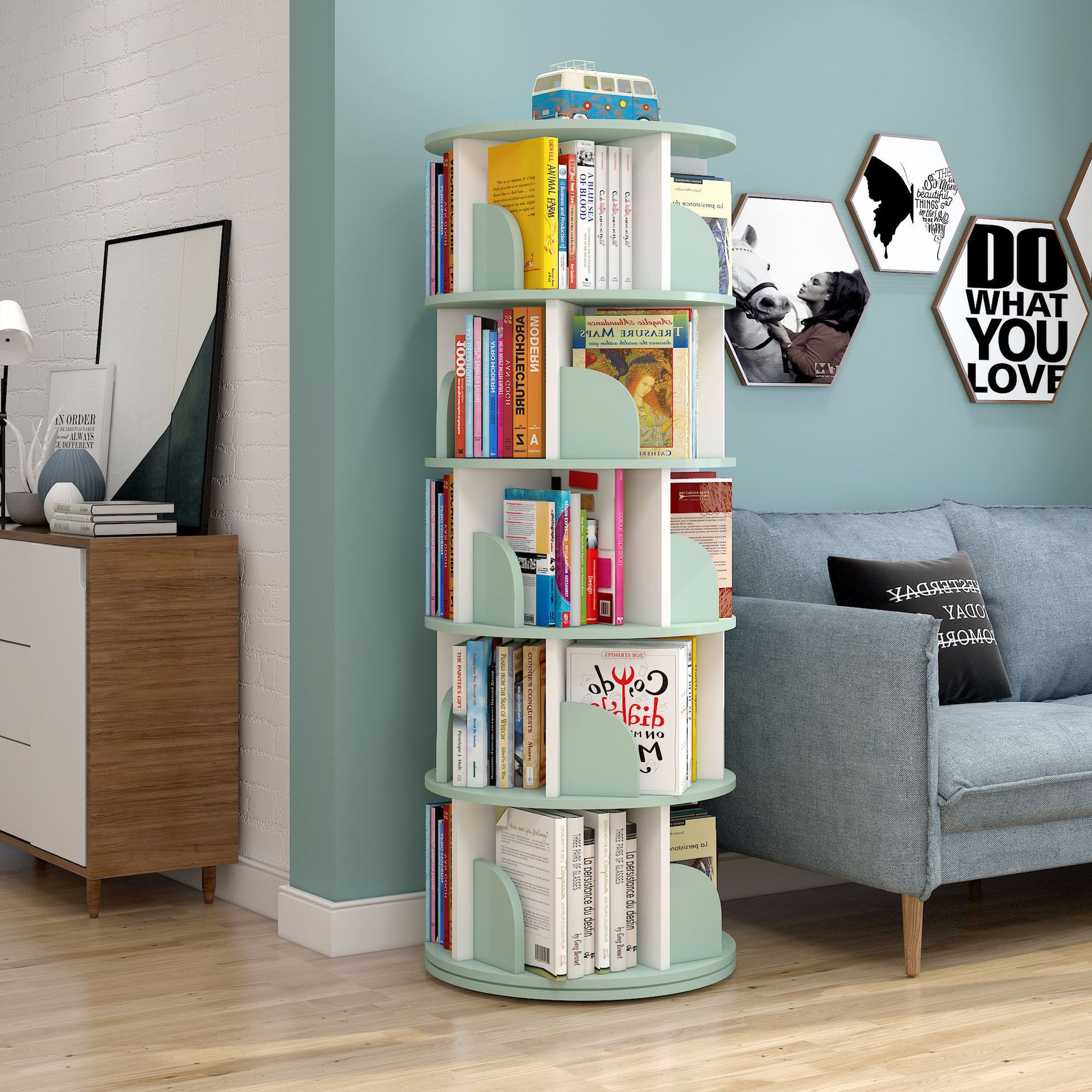 회전 책장 어린이 그림책꽂이 간단한 가정 공간 절약 간단한 바닥 세우기 학생 창의적 보관 책장스토어 가기