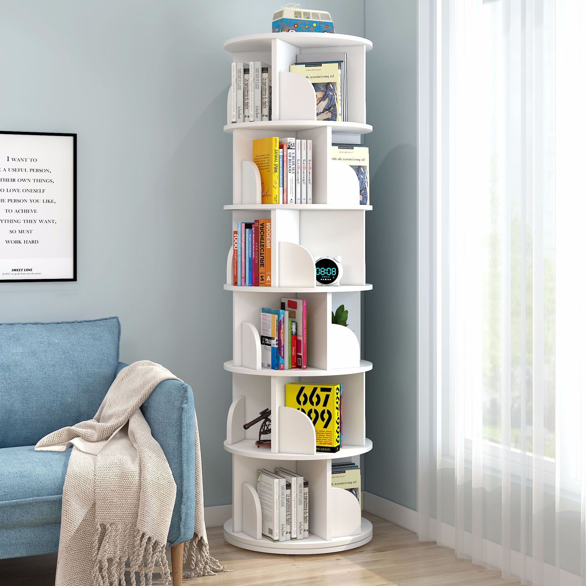 회전 책장 어린이 그림책꽂이 간단한 가정 공간 절약 간단한 바닥 세우기 학생 창의적 보관 책장