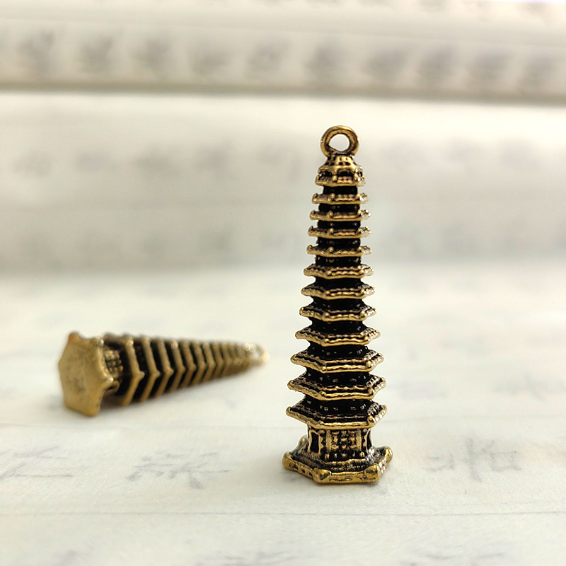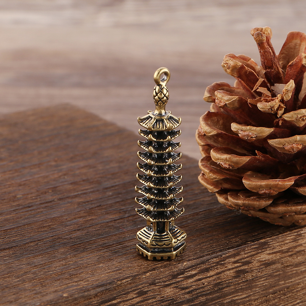 황동 크리에이티브 레트로 9 층 타워 커플 자동차 키 체인 펜던트 액세서리 올드 골드 Wenchang 타워