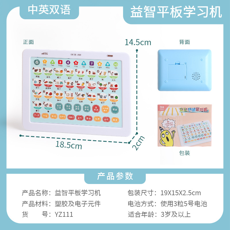 어린이 교육용 태블릿 학습기, 조기 교육용 이중 언어 읽기 기계, 듣기 및 말하기 기능이 있는 아기 장난감, 스마트스토어 가기