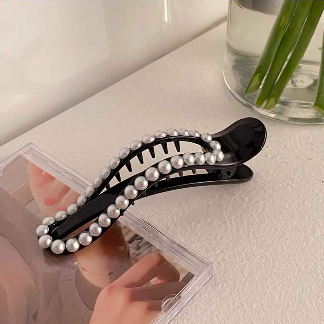 진주 Duckbill 클립 머리핀 여자의 여름 등 머리 큰 상어 클립 기질 머리 잡아 클립 머리핀 모자 고급 감각스토어 가기