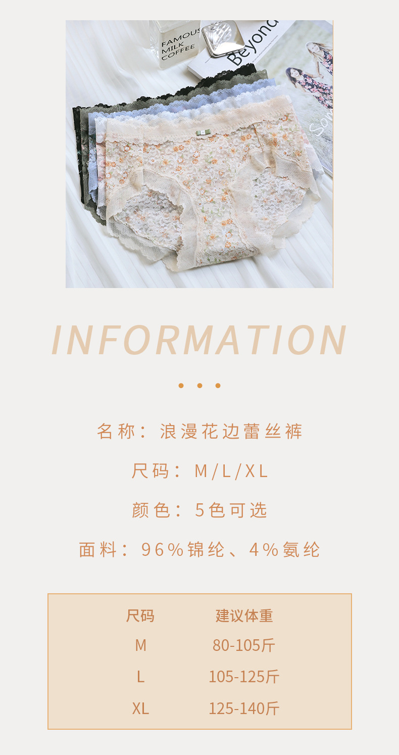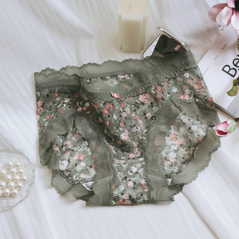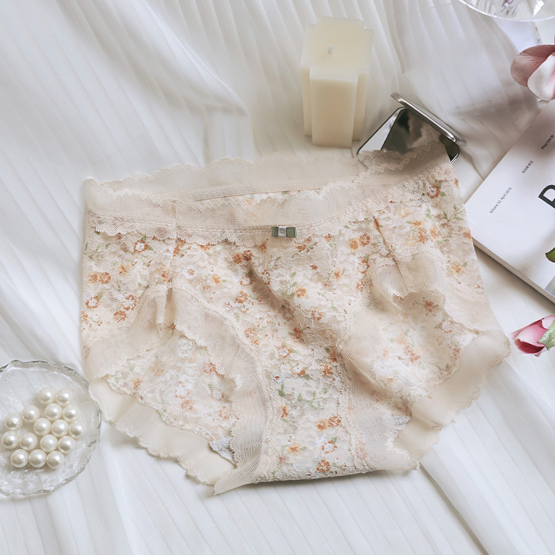 # 4021 # 레이스 팬티 여성용 작은 꽃무늬 순면 항균 달콤하고 섹시한 무봉제 일본식 소녀 삼각팬티스토어 가기