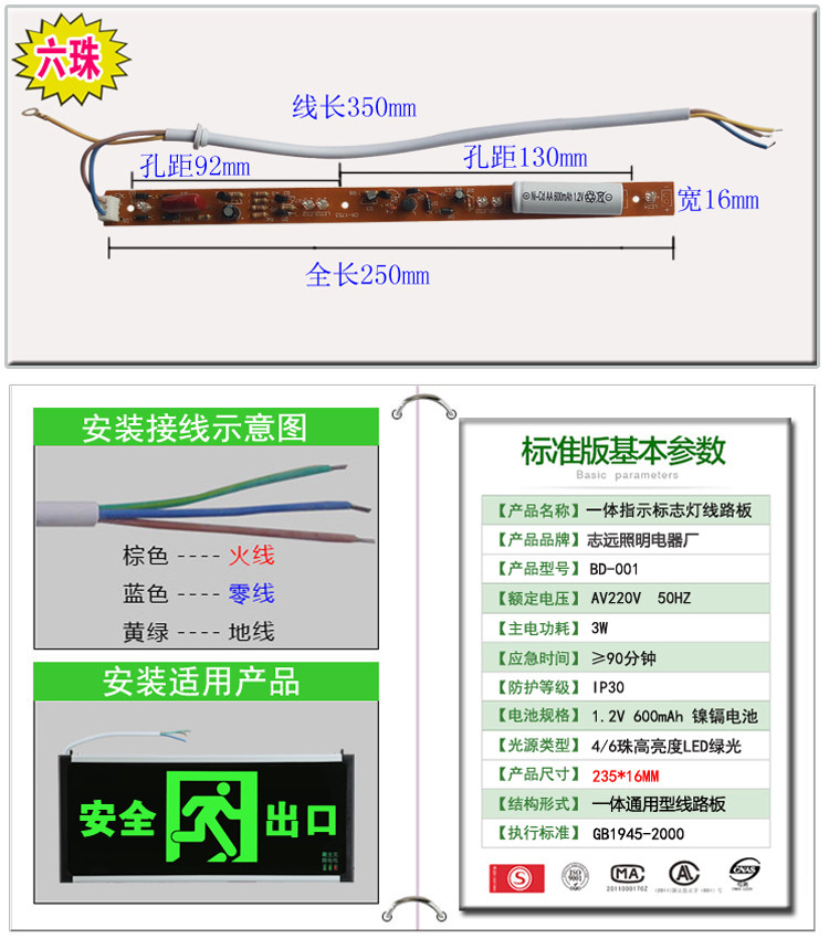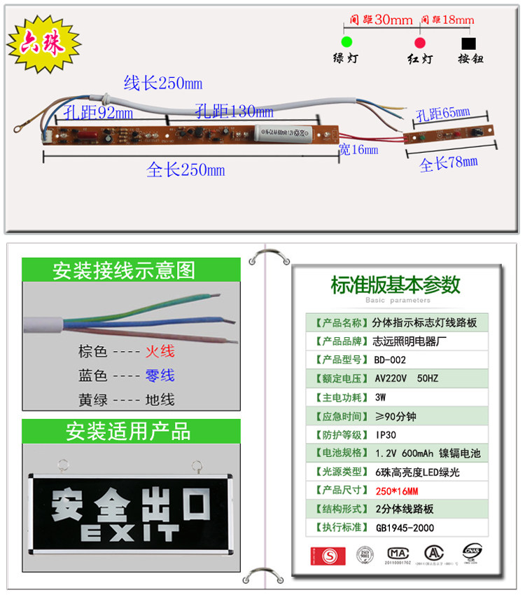 화재 비상등 심지 안전 비상구 피난 지시판 수리 회로 기판 LED 사인 부속품