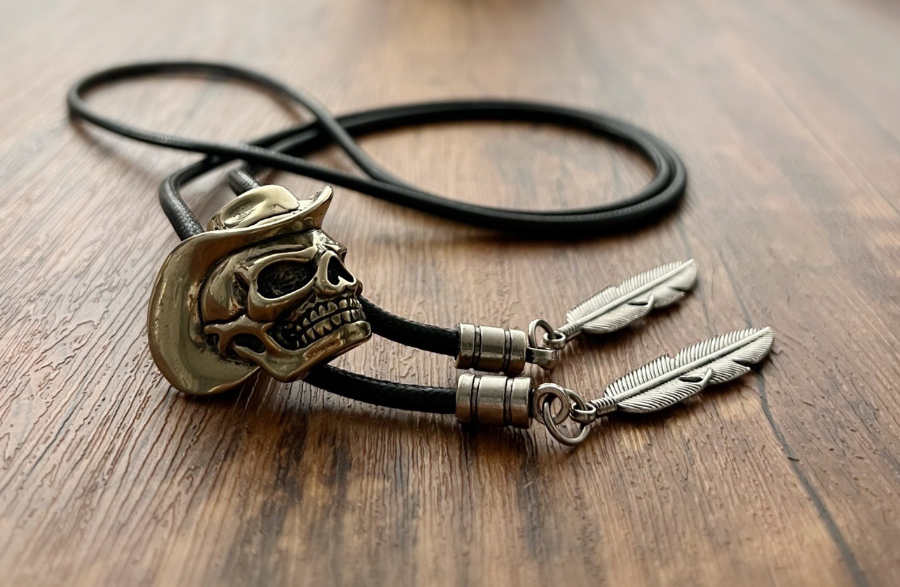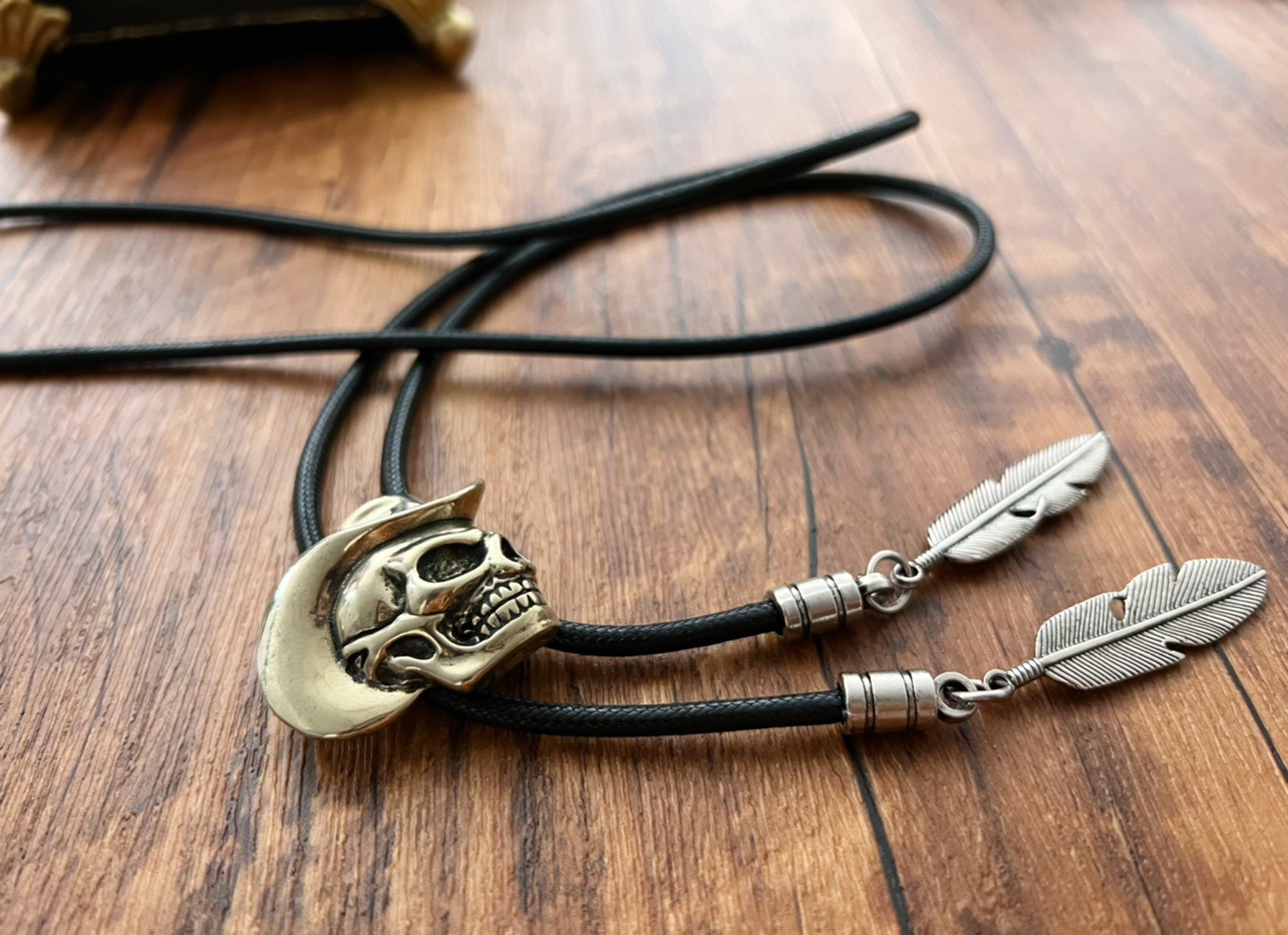 레트로 미국 폴로 TIE 웨스턴 데님 폴로 활 타이, 모자 두개골 칼라 로프 볼로 타이