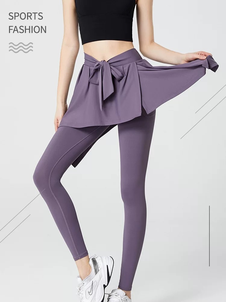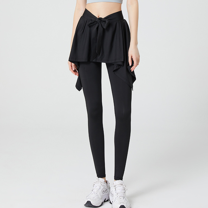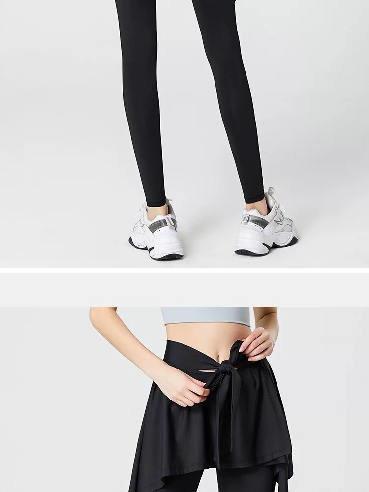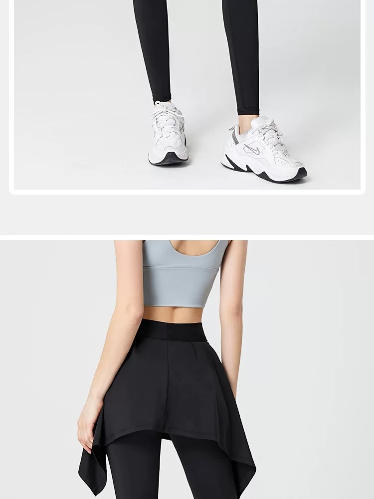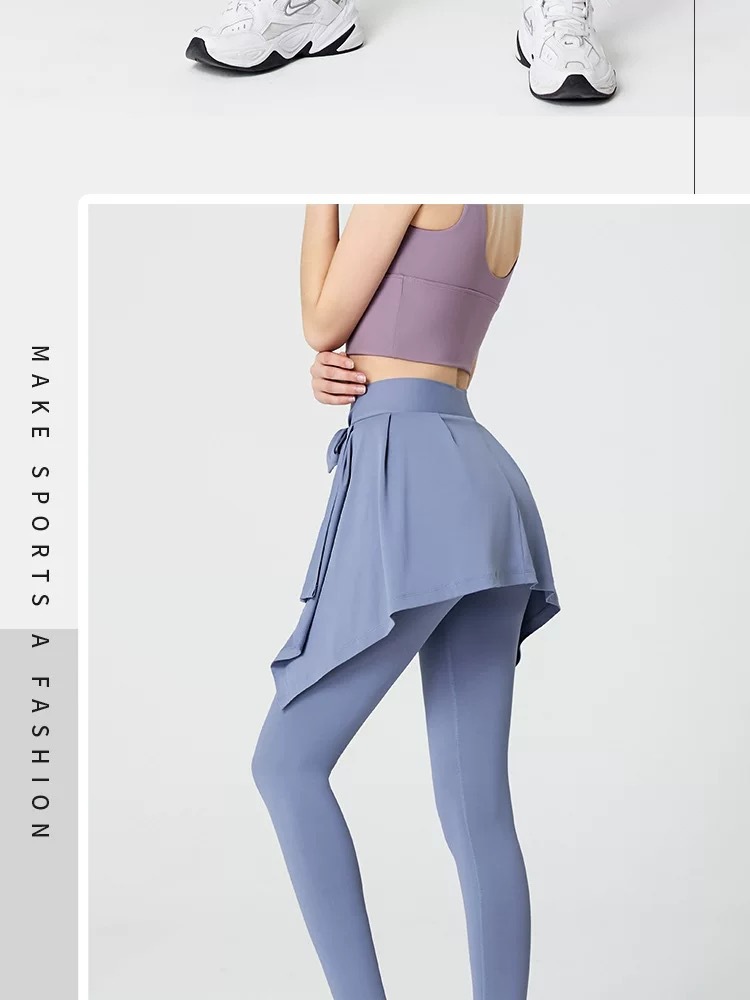새로운 플러스 사이즈 스포츠 바지 여성용 가짜 투피스 하이 웨이스트 스트랩 요가 바지 포켓 속건 꽉 엉덩이 러닝 바지