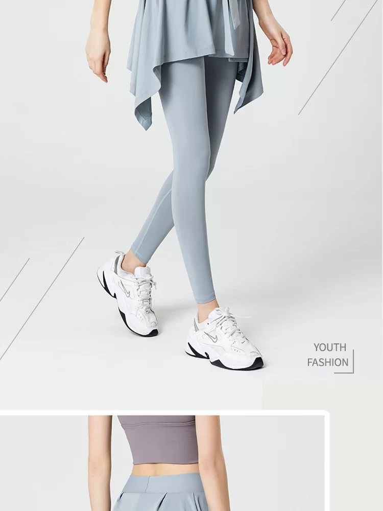 새로운 플러스 사이즈 스포츠 바지 여성용 가짜 투피스 하이 웨이스트 스트랩 요가 바지 포켓 속건 꽉 엉덩이 러닝 바지스토어 가기