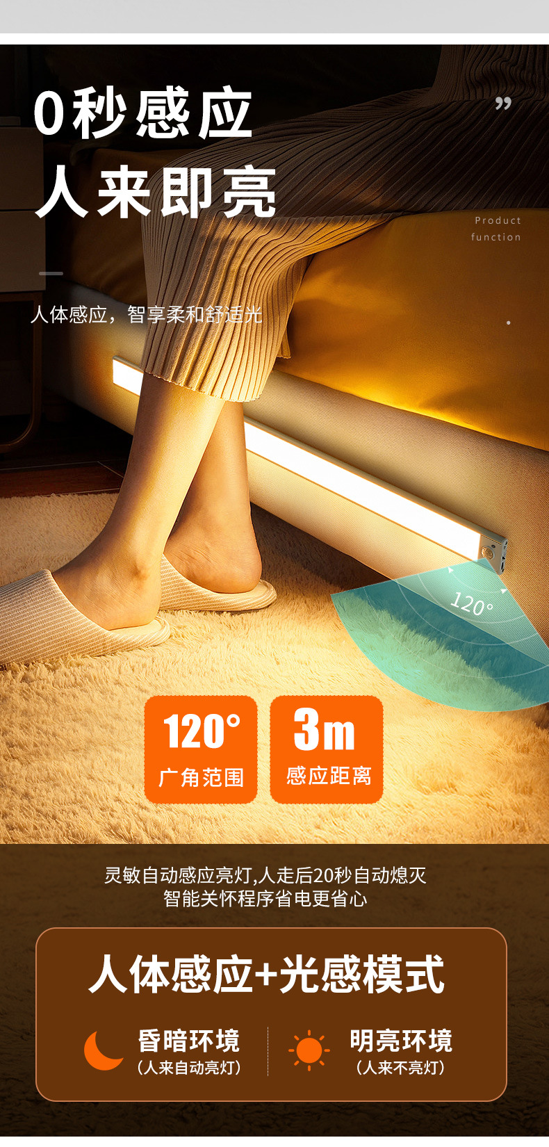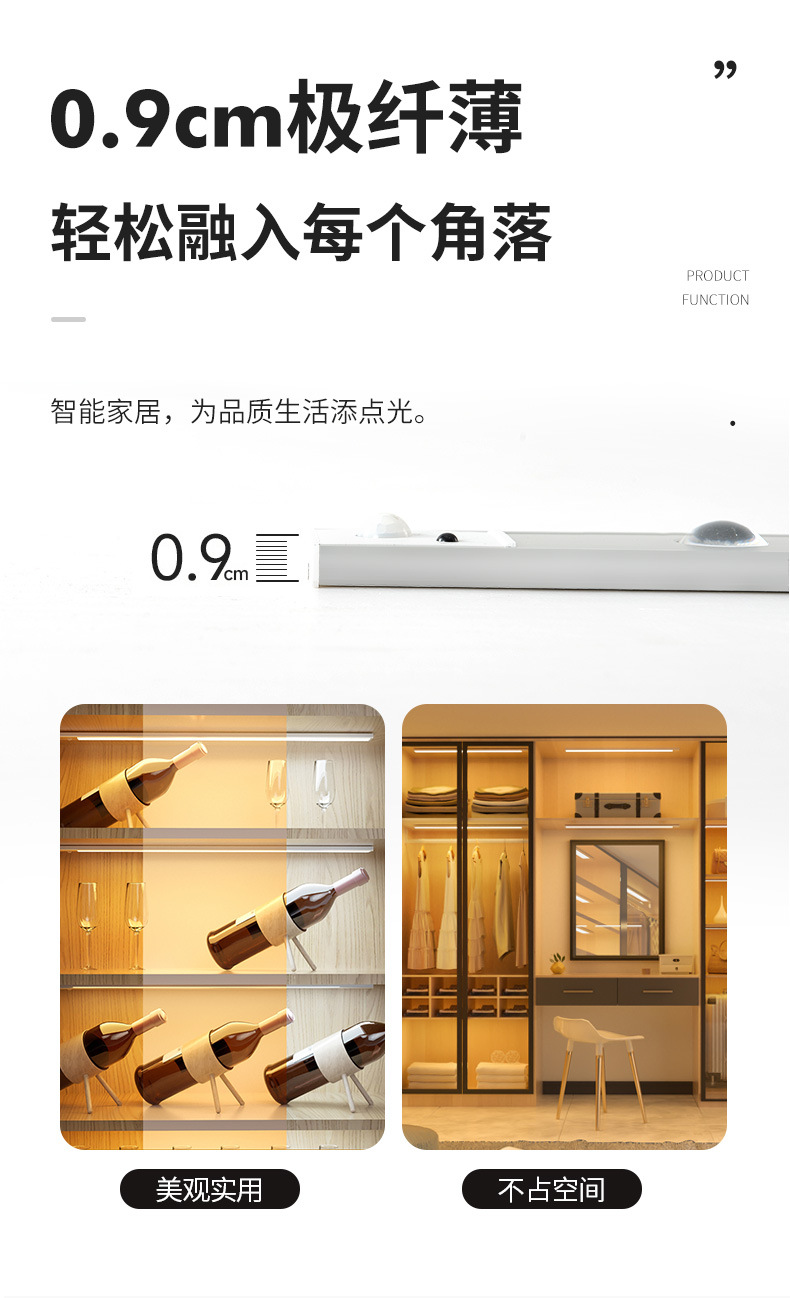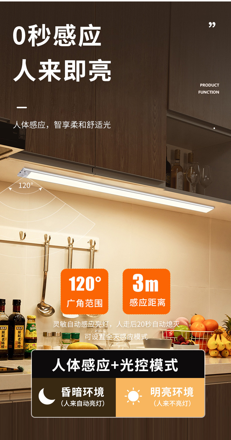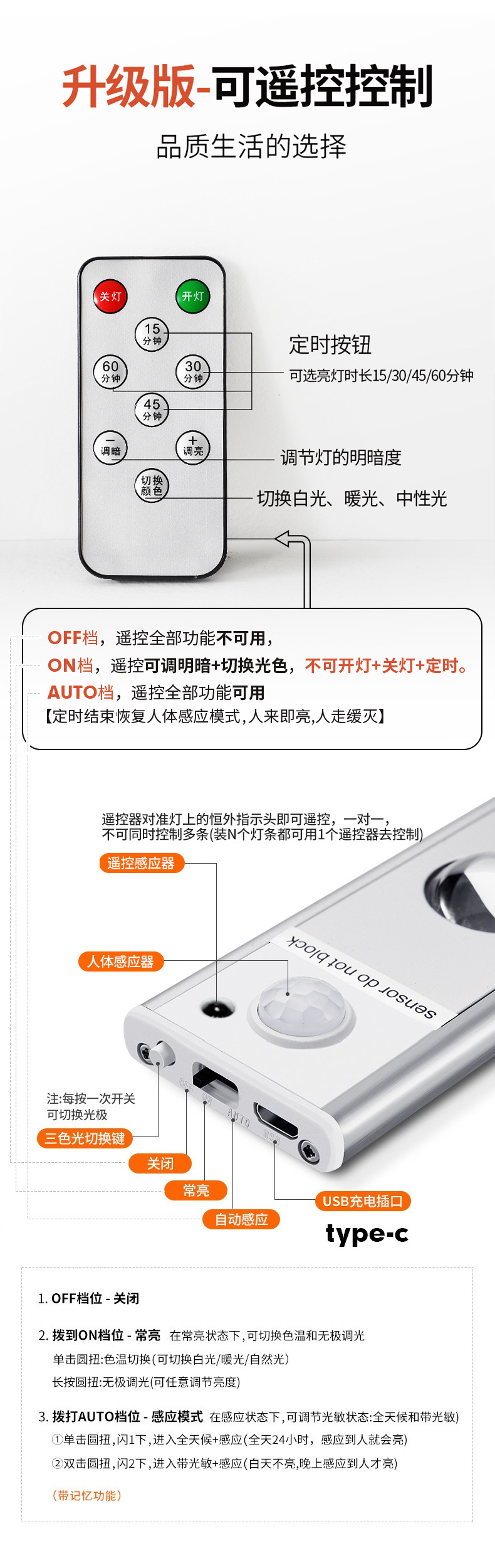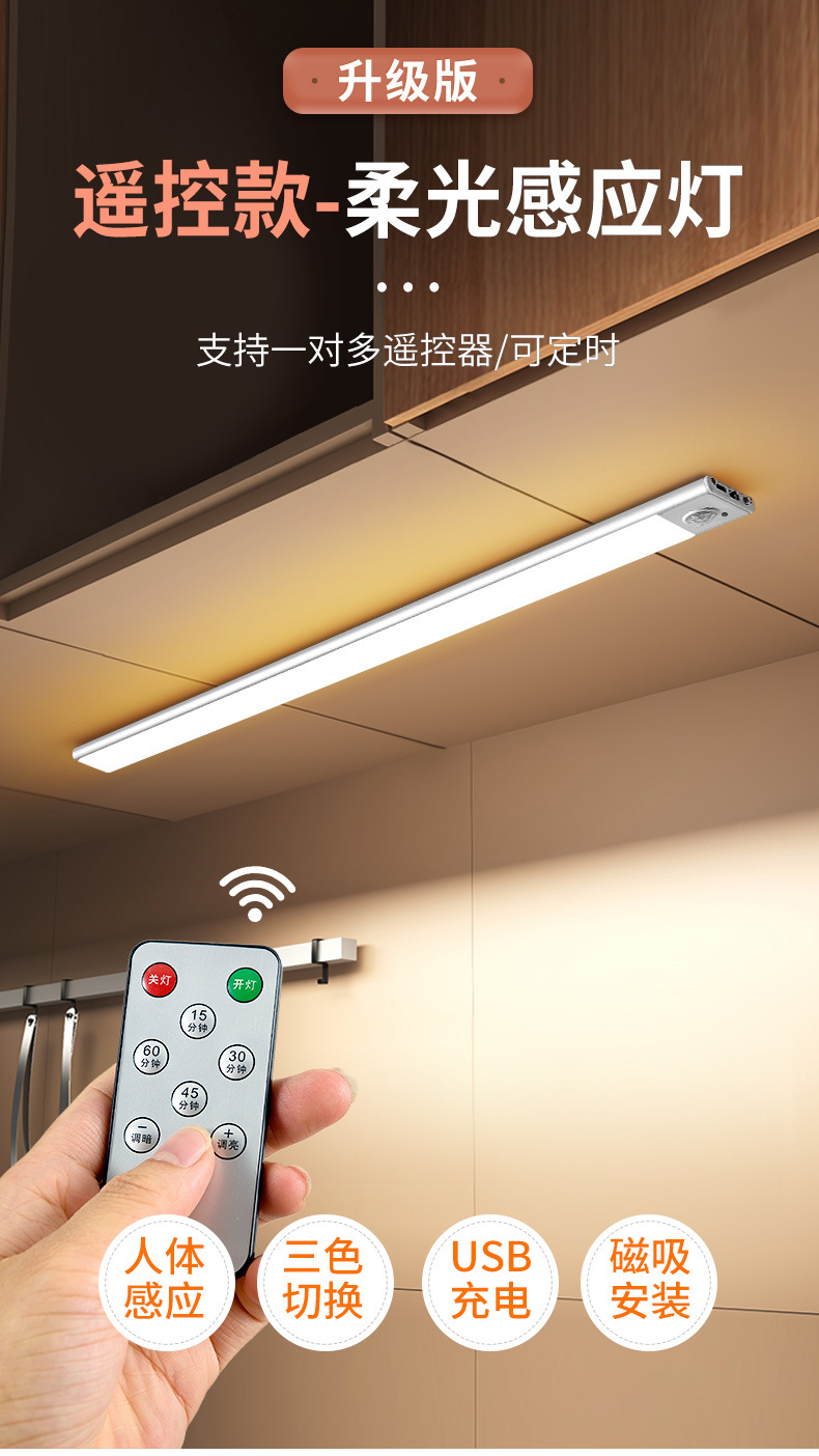 초박형 원격 제어 LED 인체 센서 라이트 스트립 충전식 자체 접착 캐비닛 옷장 와인 캐비닛 자기 스마트 센서 라이트