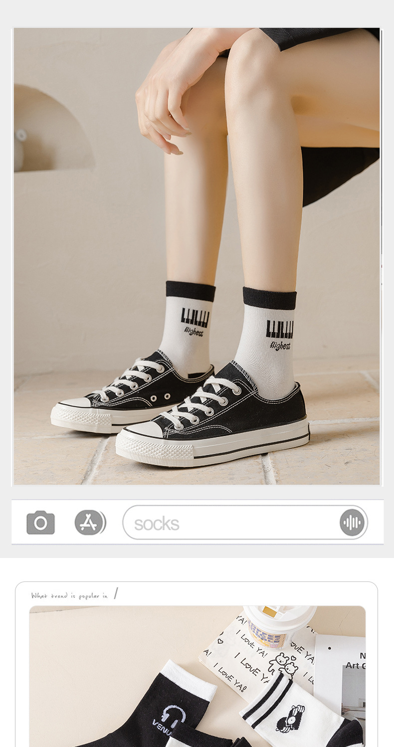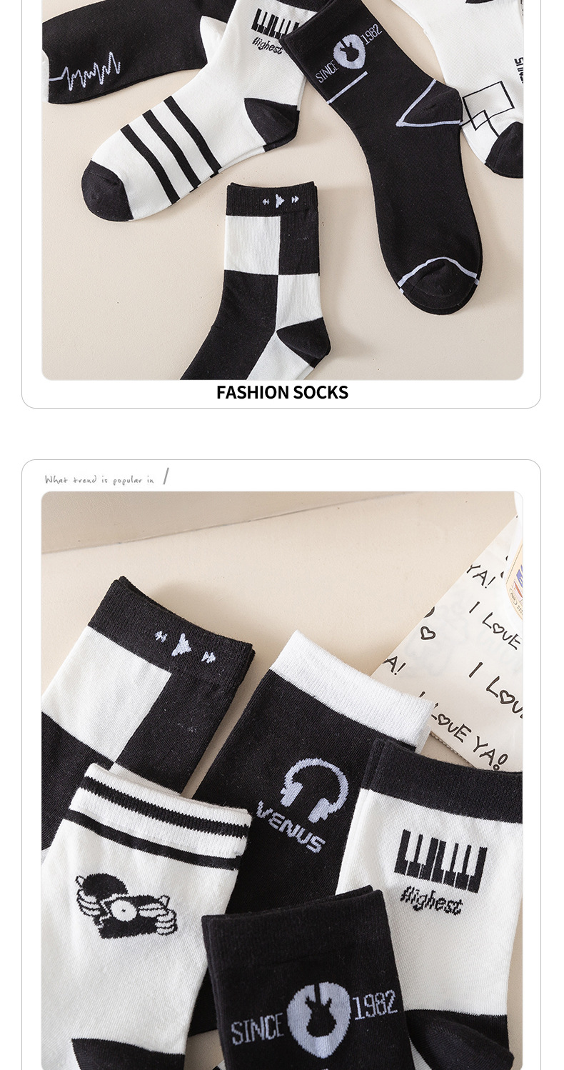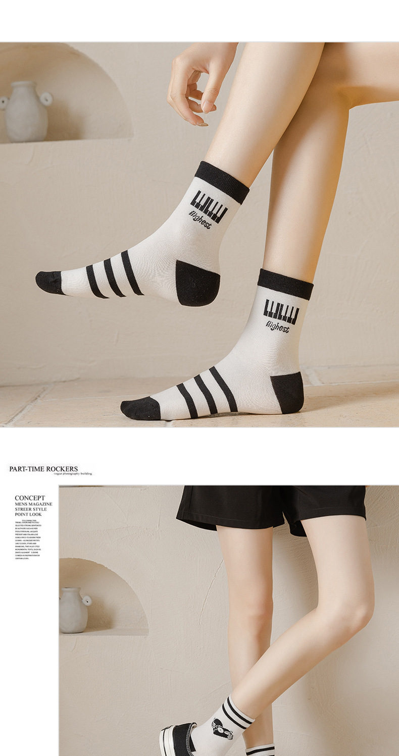 Jk 흑백 양말 여성용 트렌디 한 음악 요소 중간 길이 양말 순면 일본식 높은 양말 가을과 겨울 사계절 스타킹 거리스토어 가기