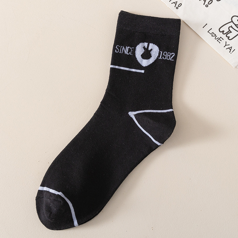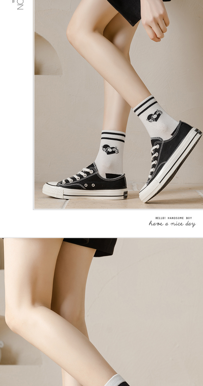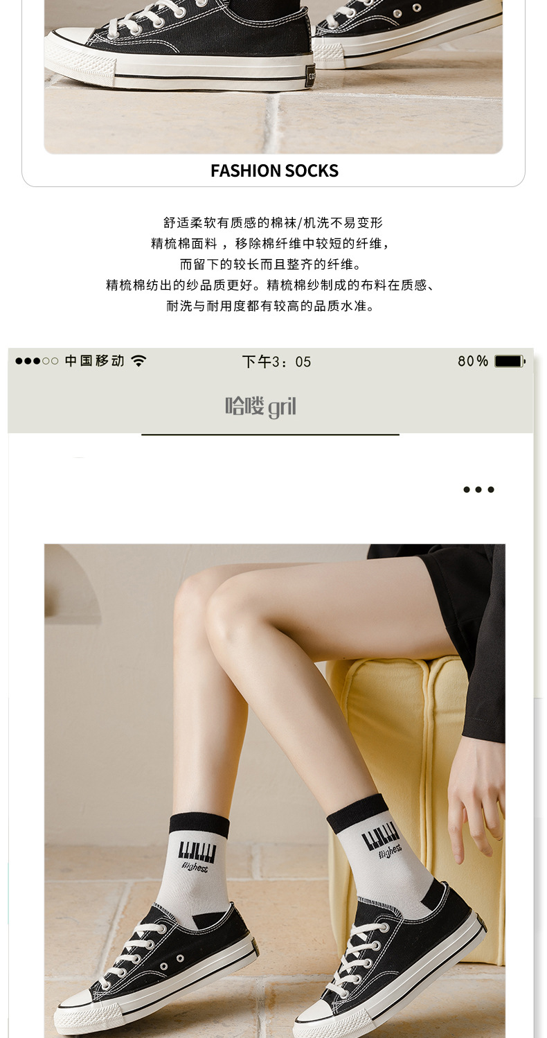 Jk 흑백 양말 여성용 트렌디 한 음악 요소 중간 길이 양말 순면 일본식 높은 양말 가을과 겨울 사계절 스타킹 거리스토어 가기
