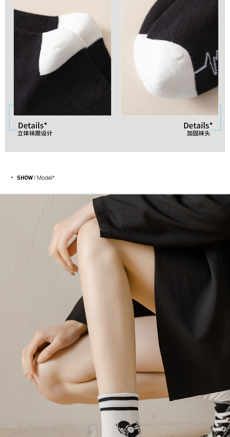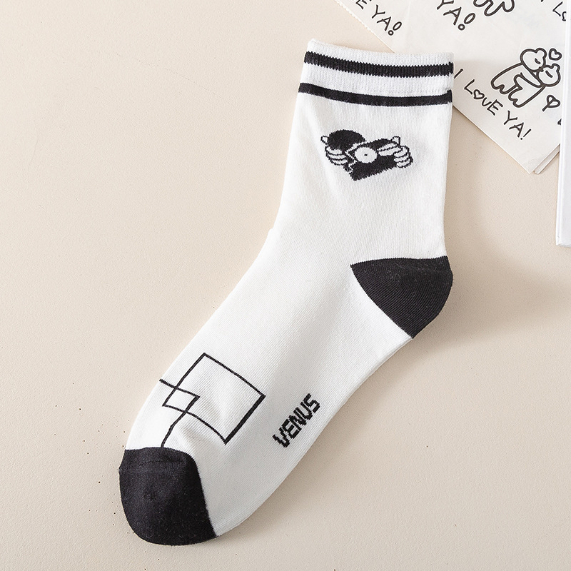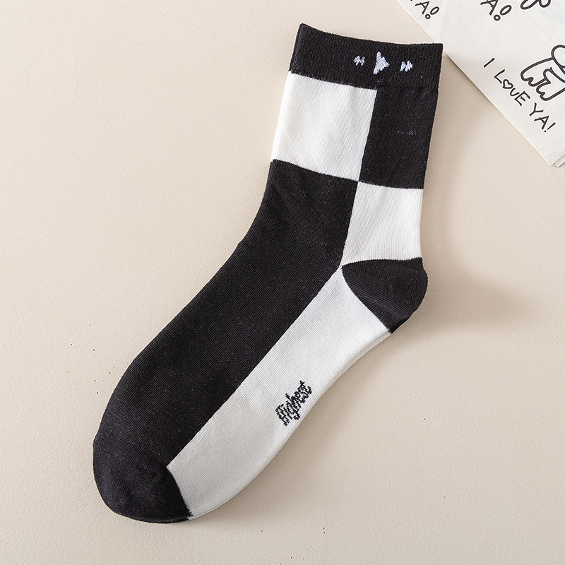 Jk 흑백 양말 여성용 트렌디 한 음악 요소 중간 길이 양말 순면 일본식 높은 양말 가을과 겨울 사계절 스타킹 거리