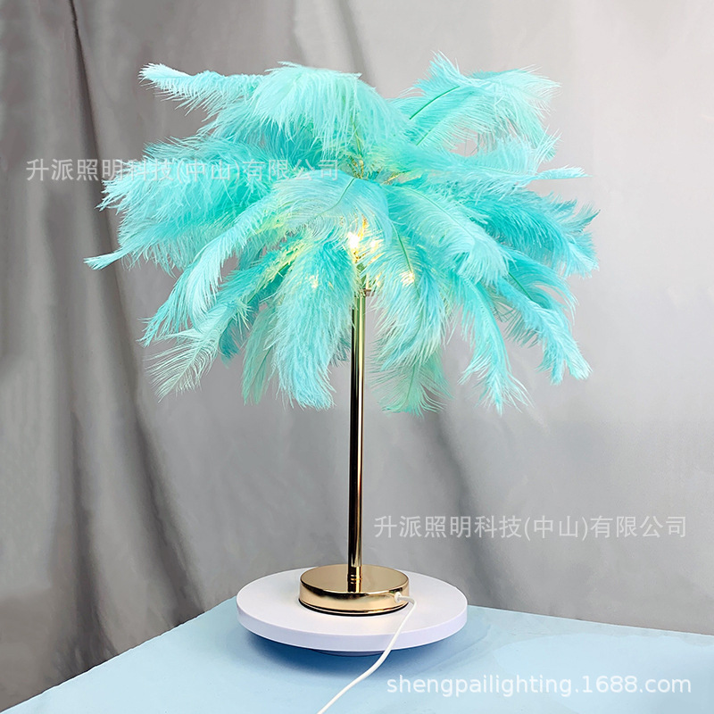 【充电羽毛灯】 轻奢北欧鸵鸟毛棕榈树羽毛台灯 卧室床头礼物桌灯5