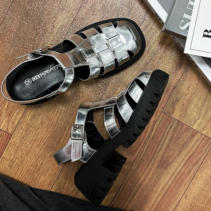 Baotou 샌들 여성 여름 2022 새로운 돼지 케이지 신발 중공 머핀 두꺼운 바닥 로마 짠 크기 4142