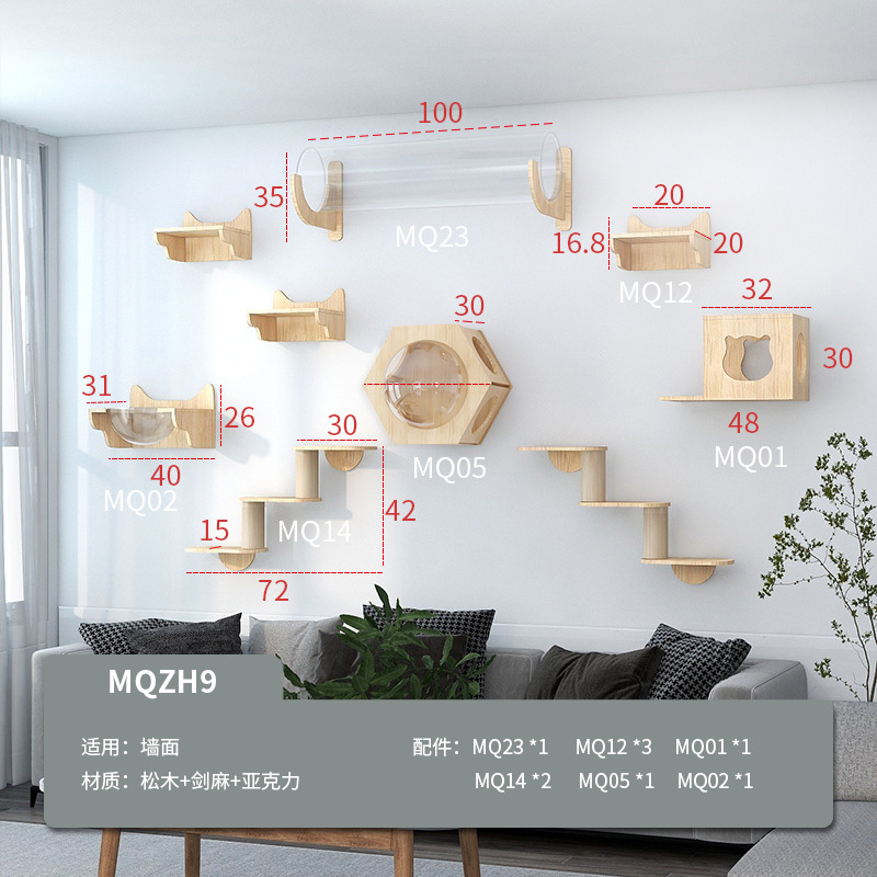벽걸이형 고양이 나무, 고양이 클라이밍 프레임, 벽걸이형 고양이 스크래쳐, 고양이 점프 플랫폼, 원목 고양이 선반, 고양이 집 일체형