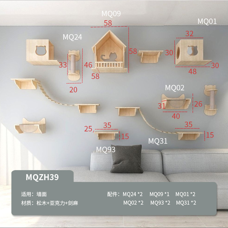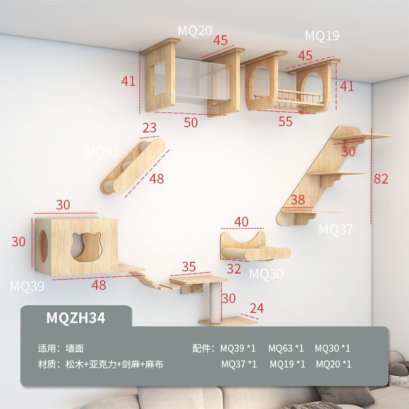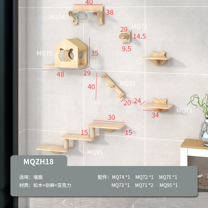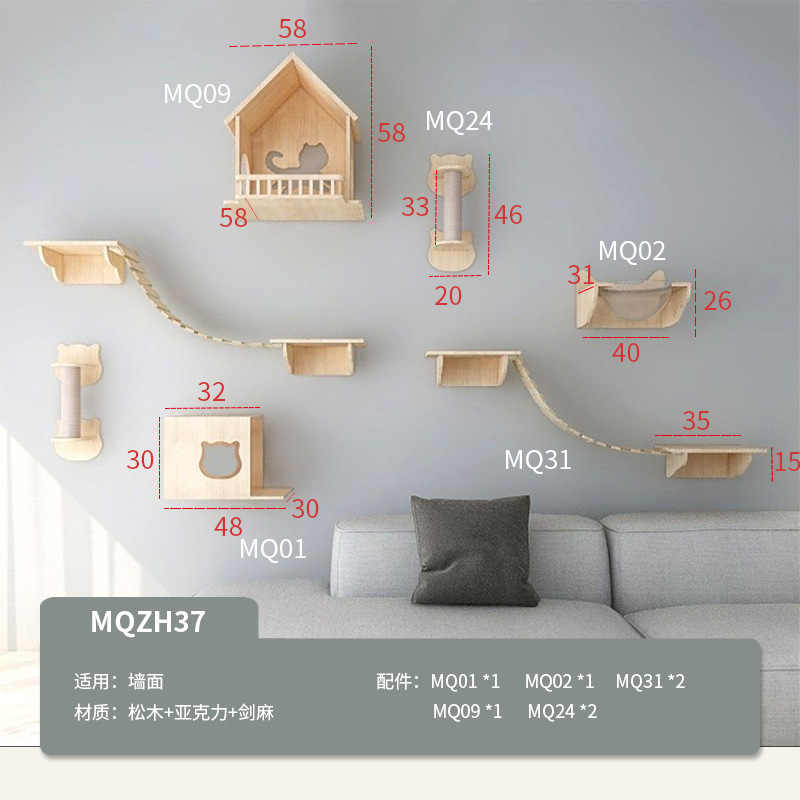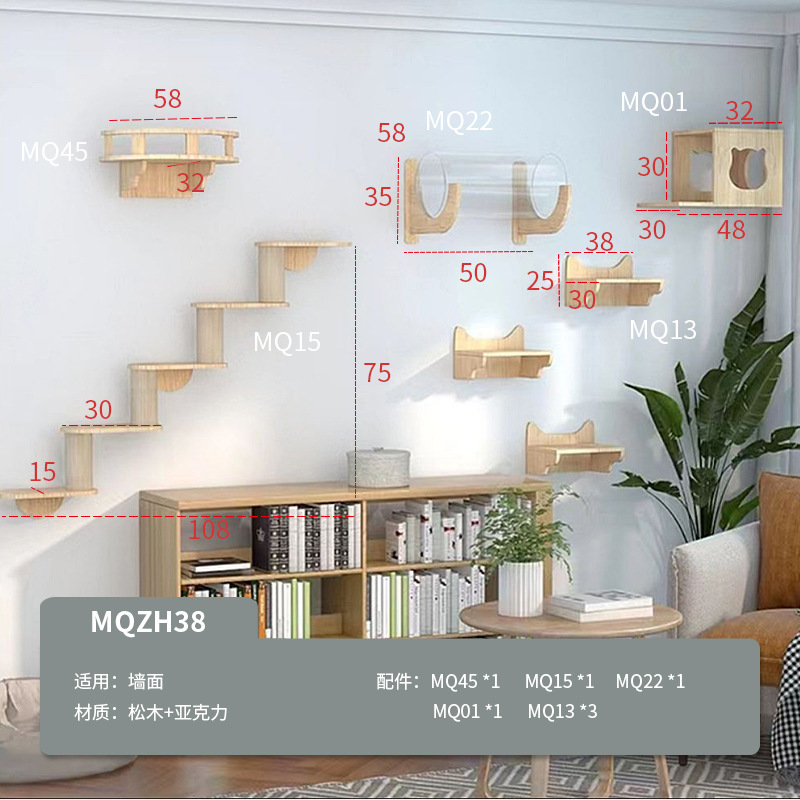 벽걸이형 고양이 나무, 고양이 클라이밍 프레임, 벽걸이형 고양이 스크래쳐, 고양이 점프 플랫폼, 원목 고양이 선반, 고양이 집 일체형스토어 가기