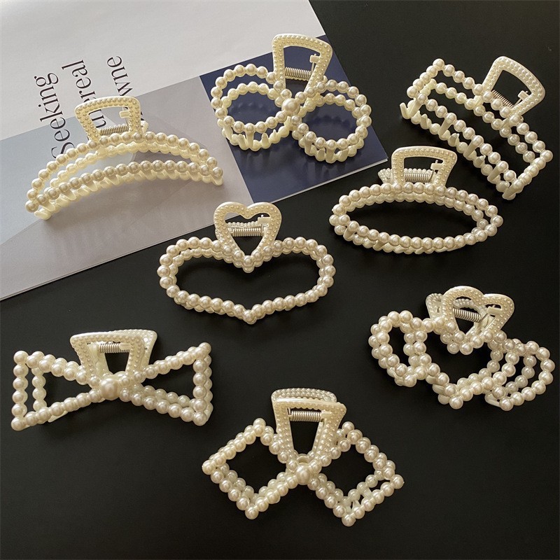 한국 동대문 우아한 진주 등 머리 잡아 머리 액세서리 간단한 올 매치 프랑스 상어 클립 인터넷 빨간 머리 클립