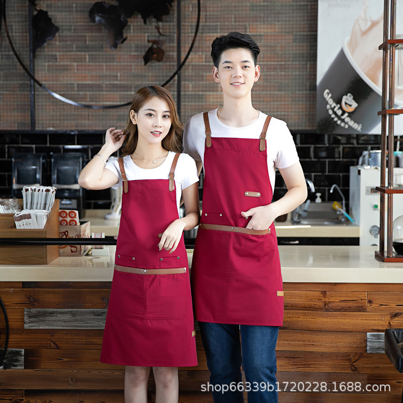 광고 앞치마 인쇄 로고 조정 가능한 캔버스 방오 허리 호텔 커피 우유 차 가게 웨이터 작업복