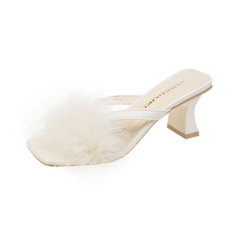 마오 마오 2023 한국 스타일의 새로운 유행 겉옷 미드 힐 하이힐 슬리퍼 우아한 여성 슬리퍼