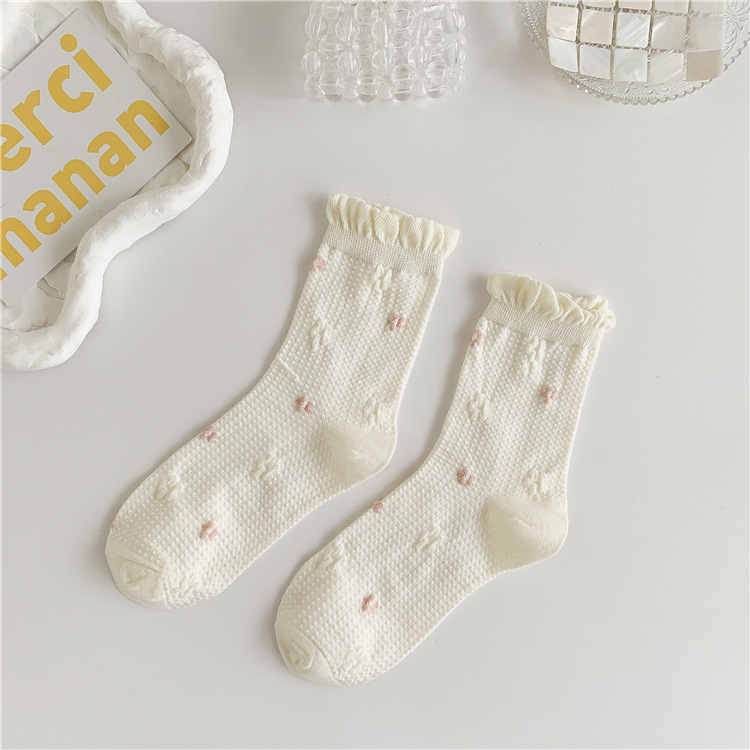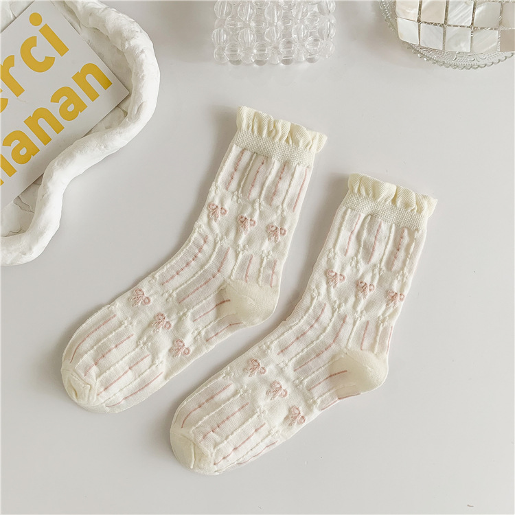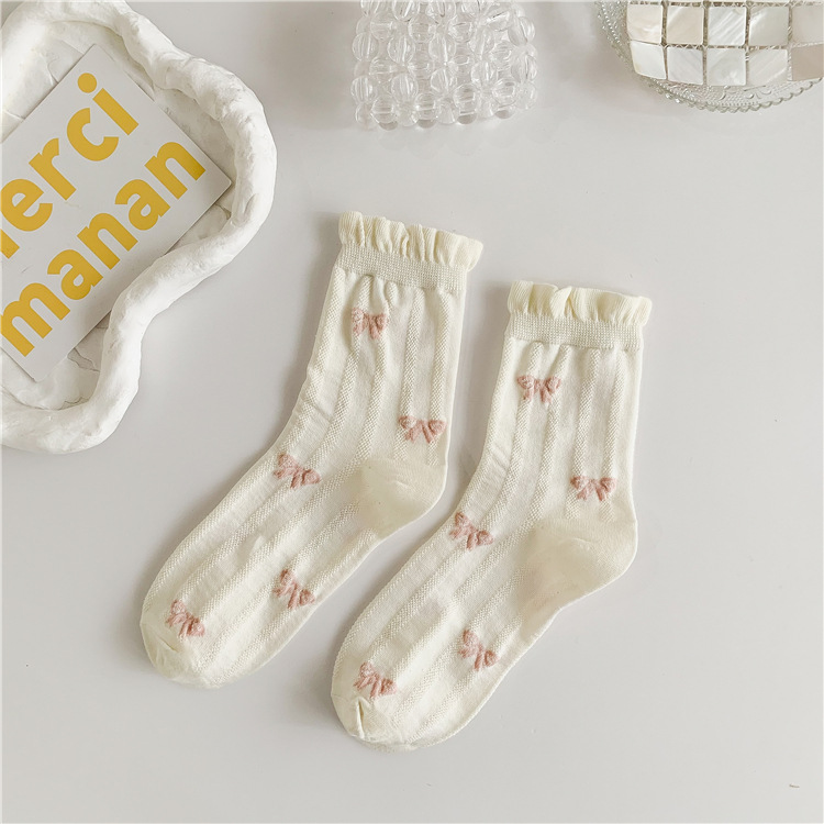 흰색 레이스 양말 어린이 중간 길이 양말 봄과 여름 얇은 인 트렌디 한 한국식 만능 귀여운 일본 학생 스타킹스토어 가기