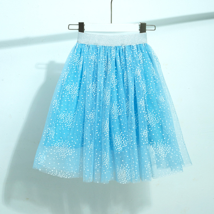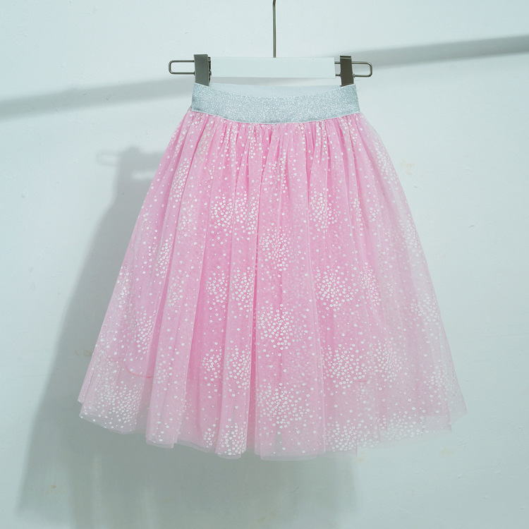 여아 스커트 2023 여름과 봄 새로운 스타일 미디 어린이 메쉬 프린트 멋진 중간 길이 스커트 아기 소녀의 귀여운 롱 스커트스토어 가기