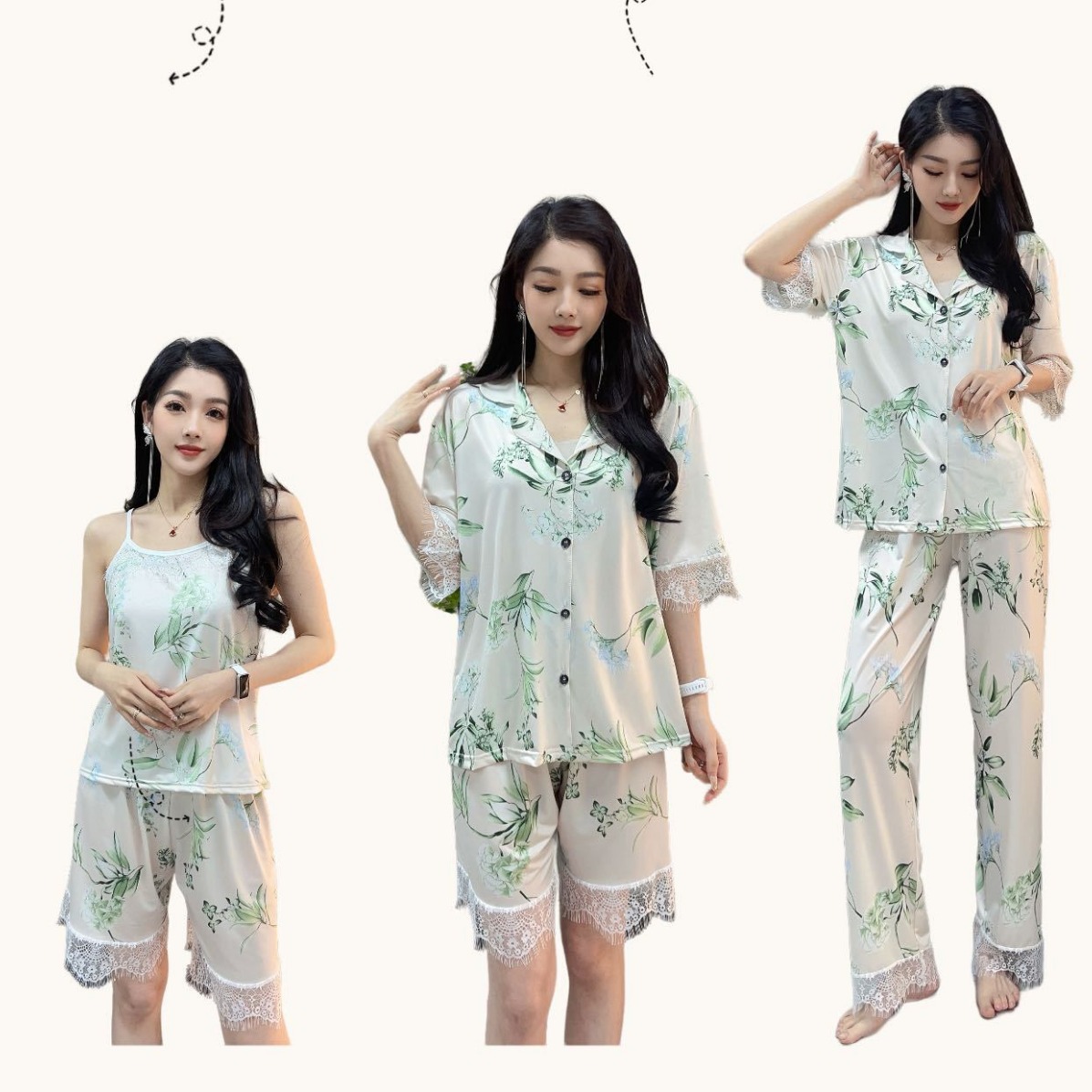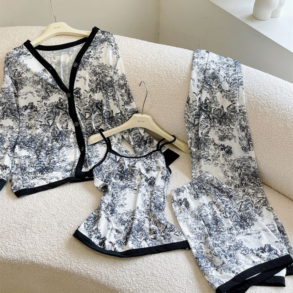 중국풍 수묵화 홈웨어 4종 세트 아이스 실크 잠옷 여성 프린트 끈 팬티 세트 여성용 아이스 실크 시원한 느낌스토어 가기