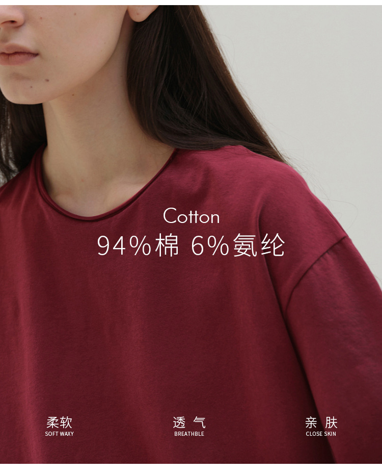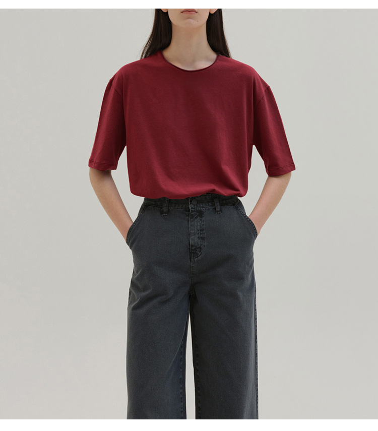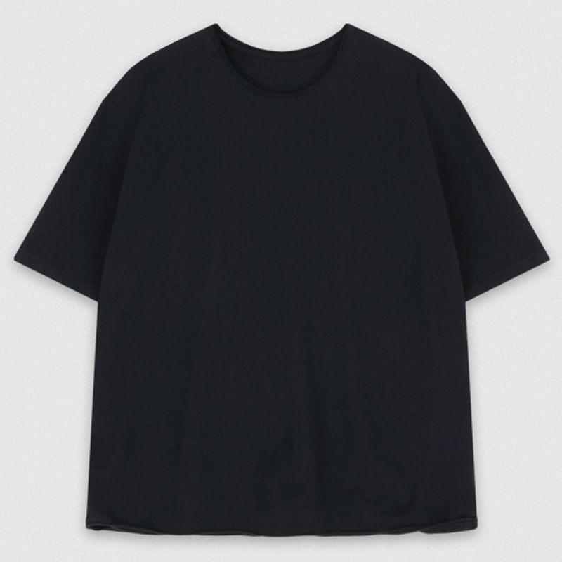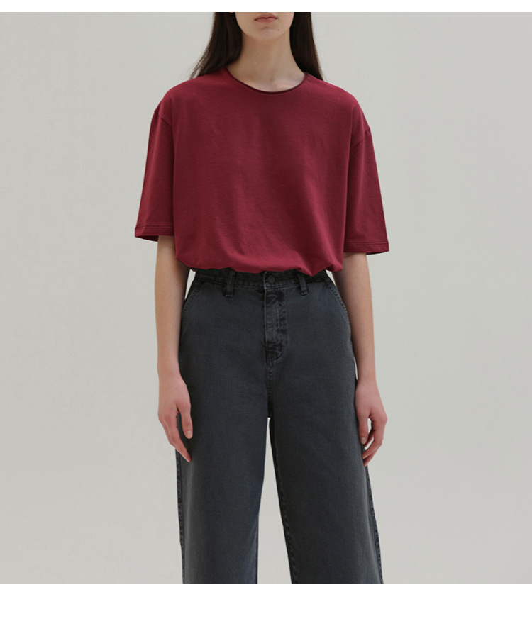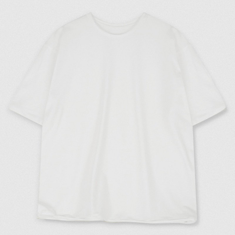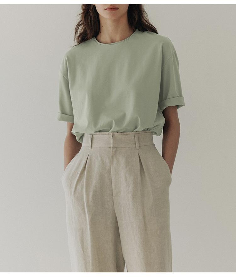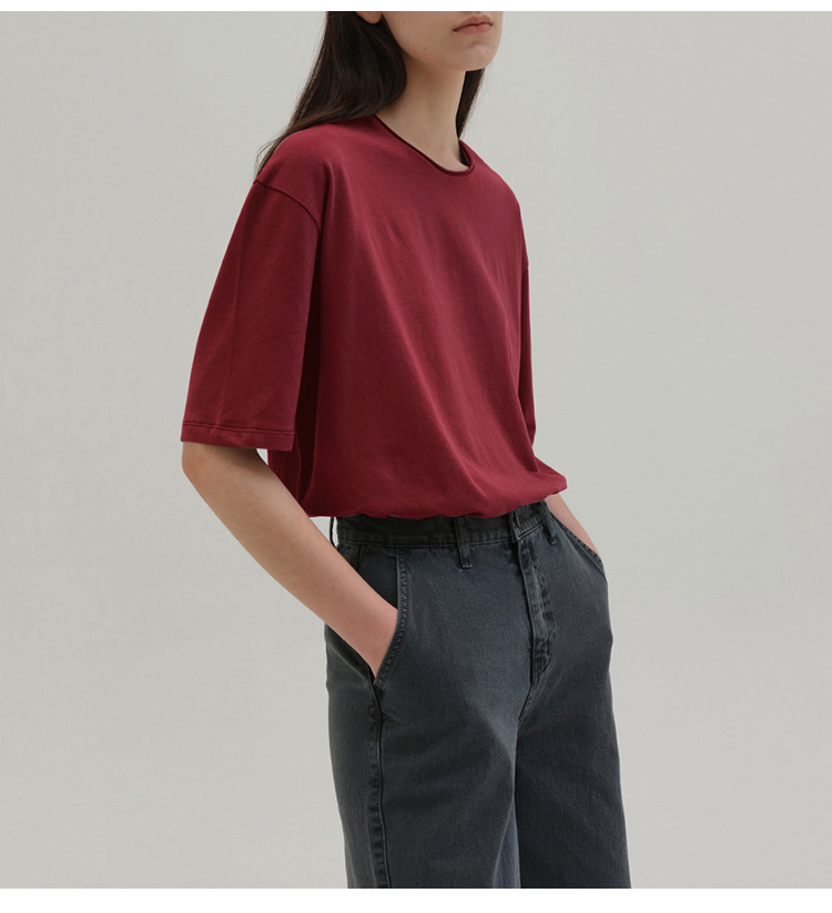 【클리어런스】반팔 티셔츠 미니멀 스타일 라운드넥 끝단 테두리 디자인 독특한 기본형 여성용 티셔츠