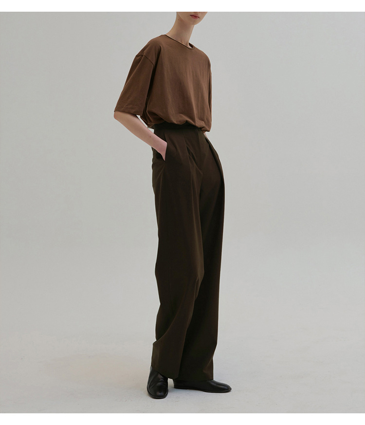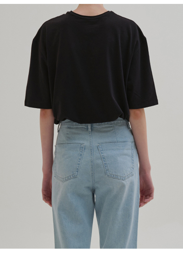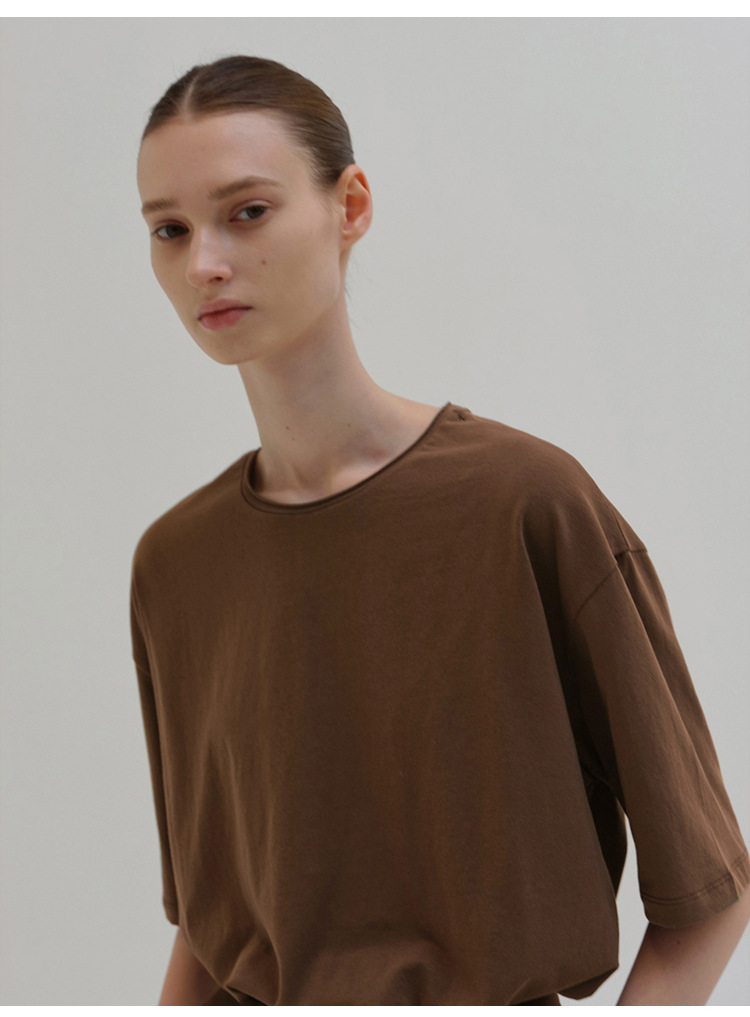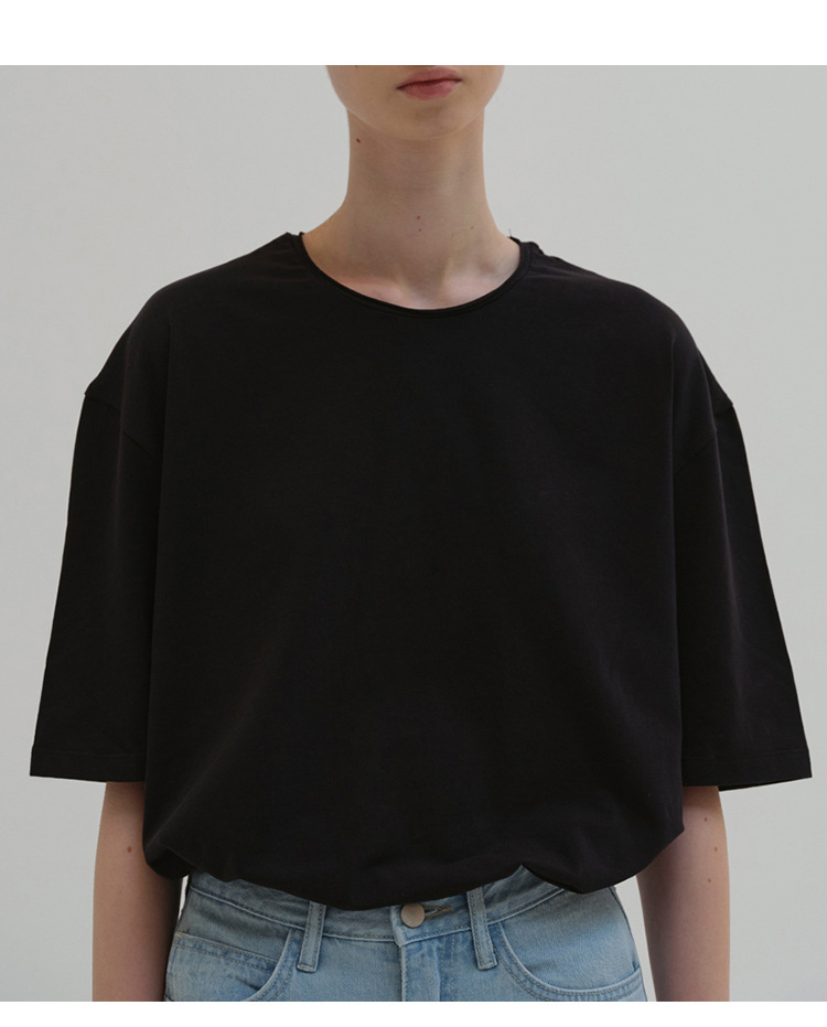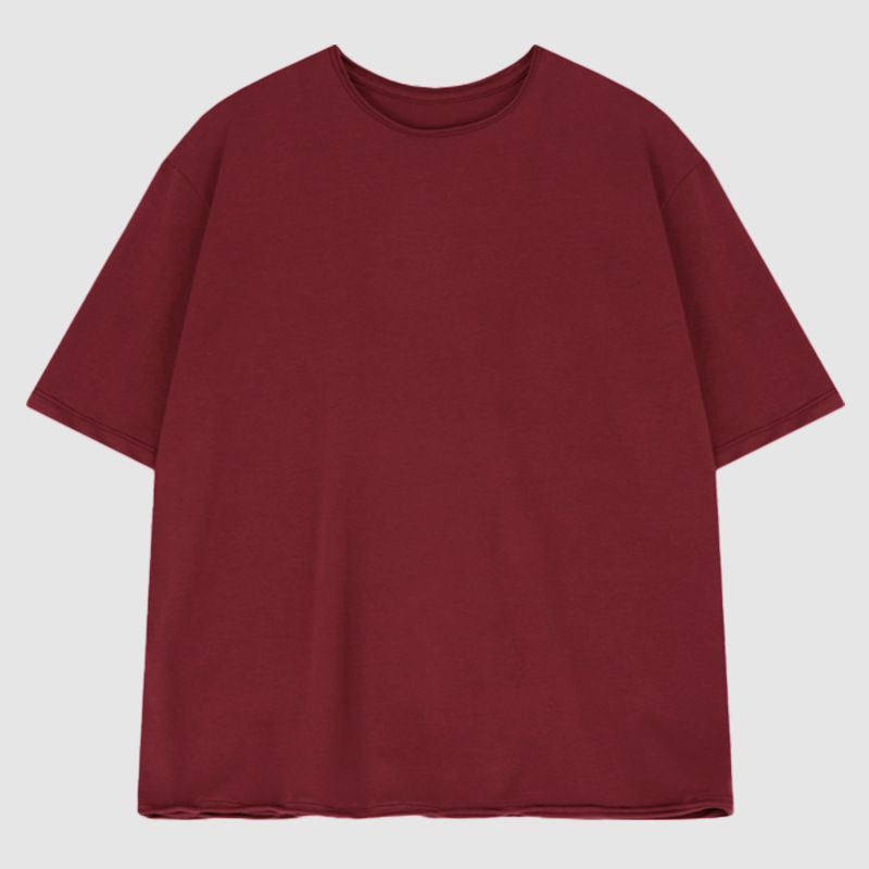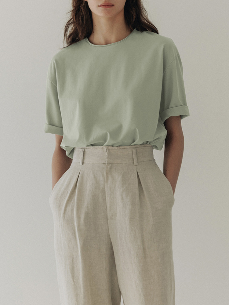 【클리어런스】반팔 티셔츠 미니멀 스타일 라운드넥 끝단 테두리 디자인 독특한 기본형 여성용 티셔츠