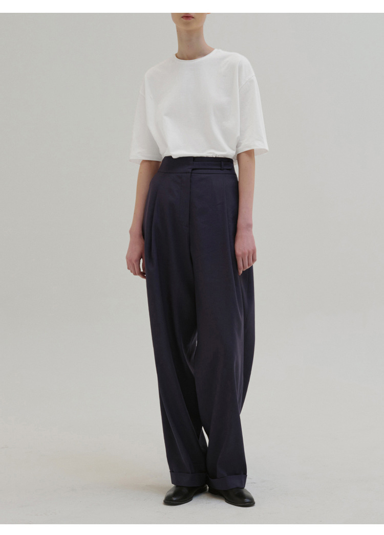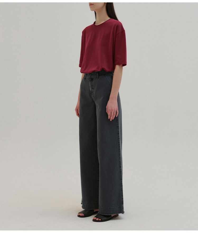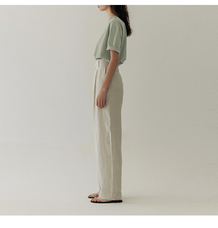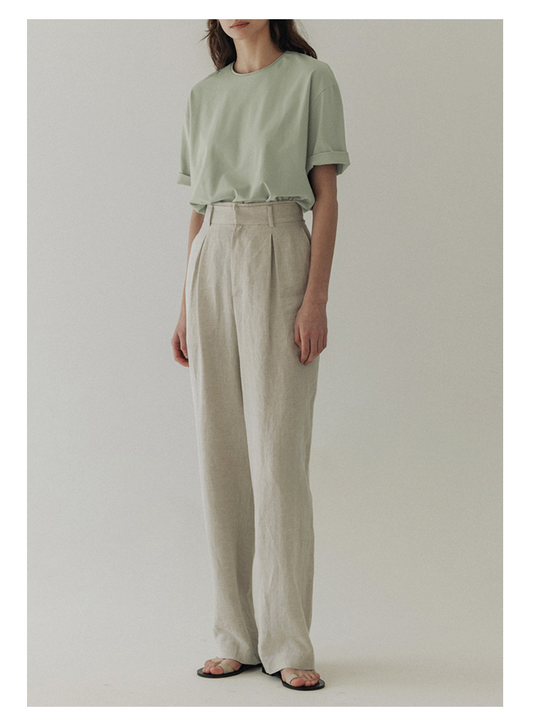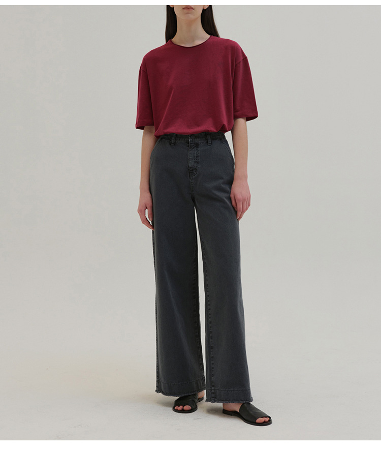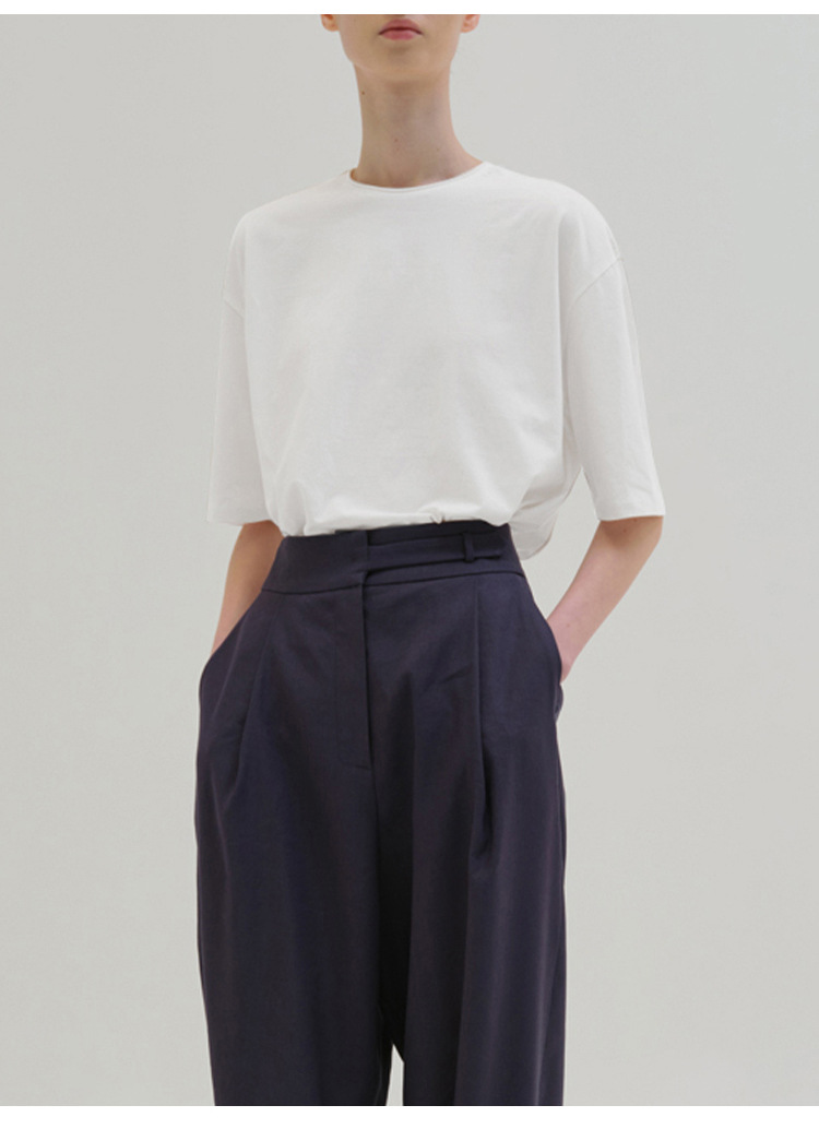 【클리어런스】반팔 티셔츠 미니멀 스타일 라운드넥 끝단 테두리 디자인 독특한 기본형 여성용 티셔츠