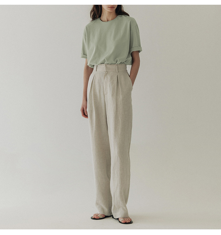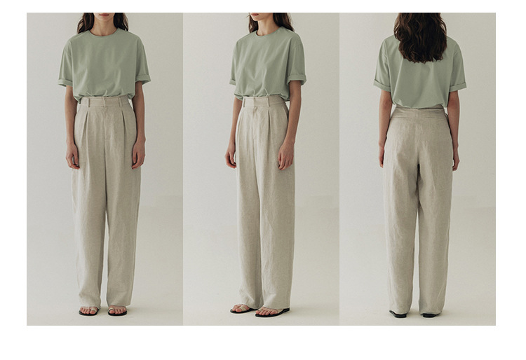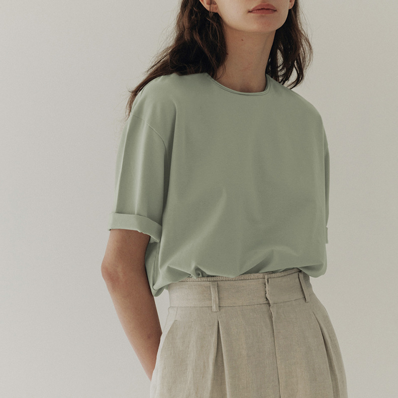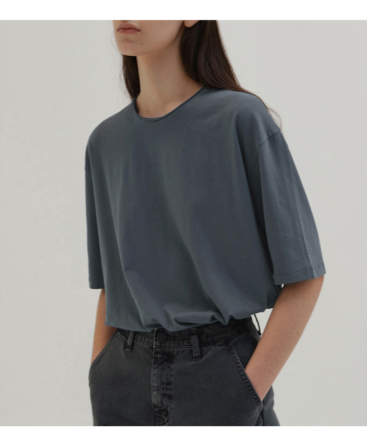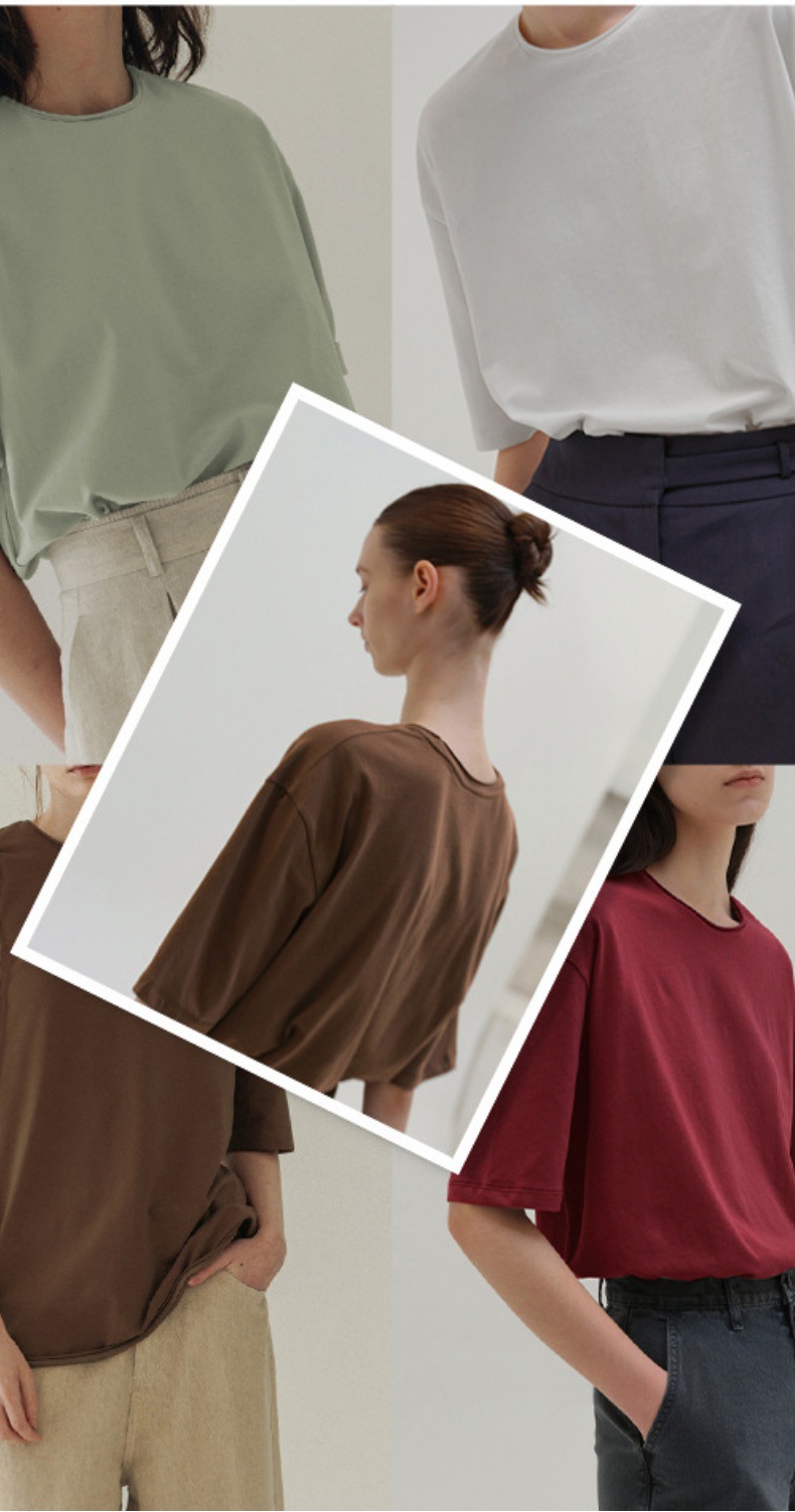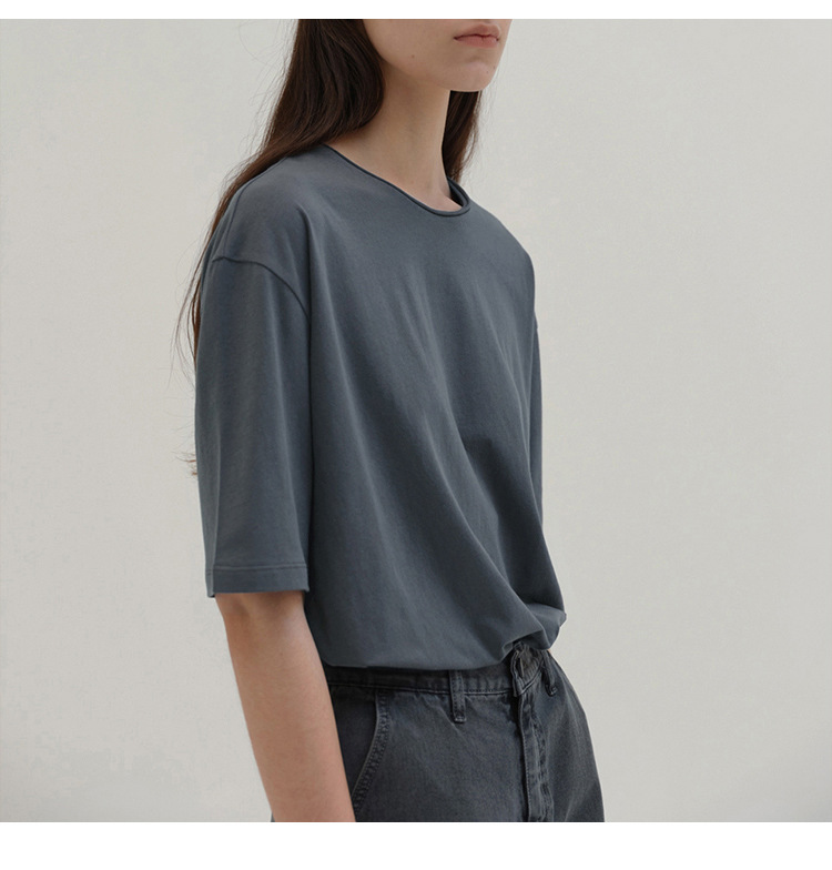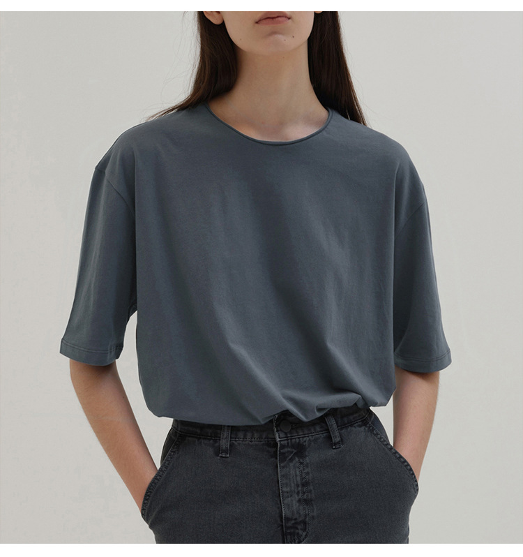 【클리어런스】반팔 티셔츠 미니멀 스타일 라운드넥 끝단 테두리 디자인 독특한 기본형 여성용 티셔츠스토어 가기
