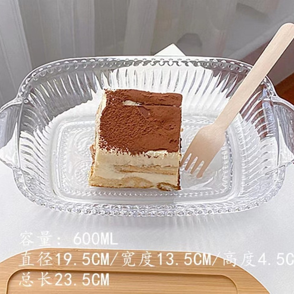 고급스러운 투명 유리 그릇, 가정용 양손잡이 접시, 과일 샐러드 그릇, 엠보싱 디저트 과일 접시