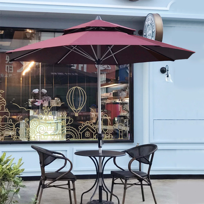 • 단일 원형 탄소강 70cm 원형 테이블 + 의자 2개 + 알루미늄 합금 이중 지붕 밀라노 우산