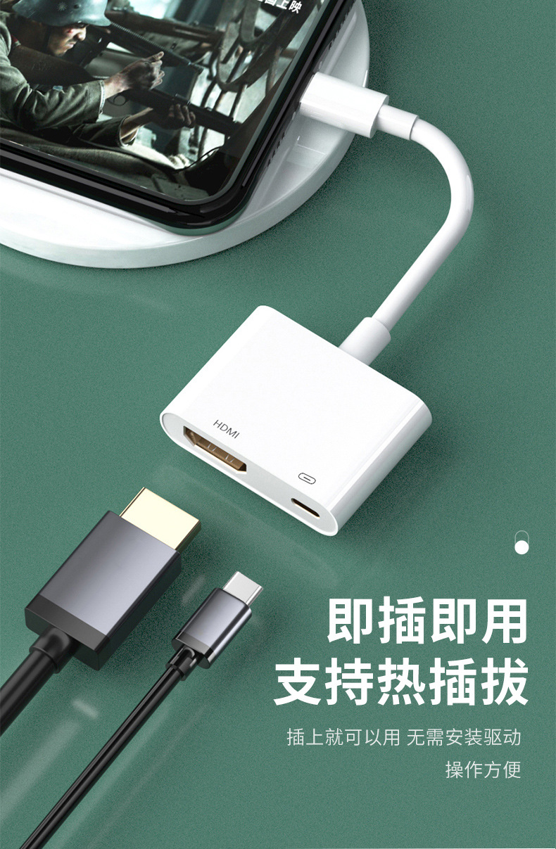 HDMI HD 동일한 화면 장치 HD 어댑터 케이블에 애플 휴대 전화 프로젝터 iPhone13/12/11 적용 가능