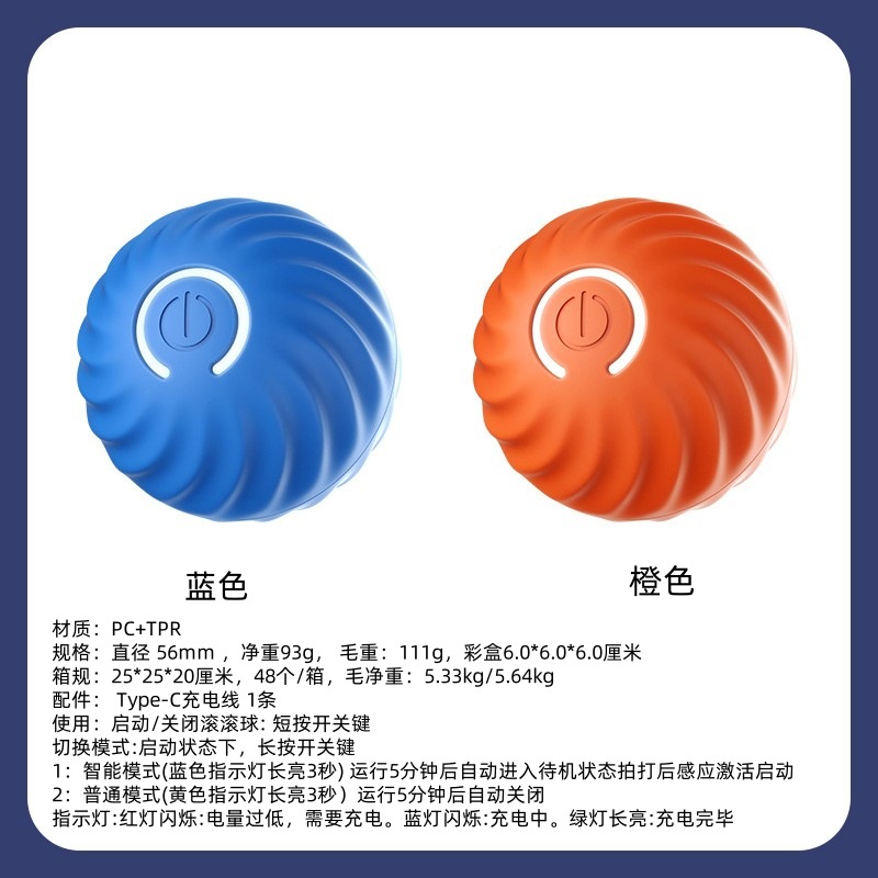 使用:1、启动/关闭滚滚球:短按开关键。2、切换模式:启动状态下,长按开关键