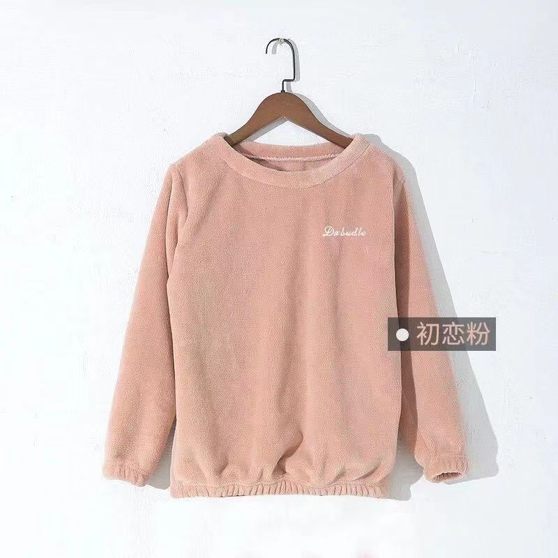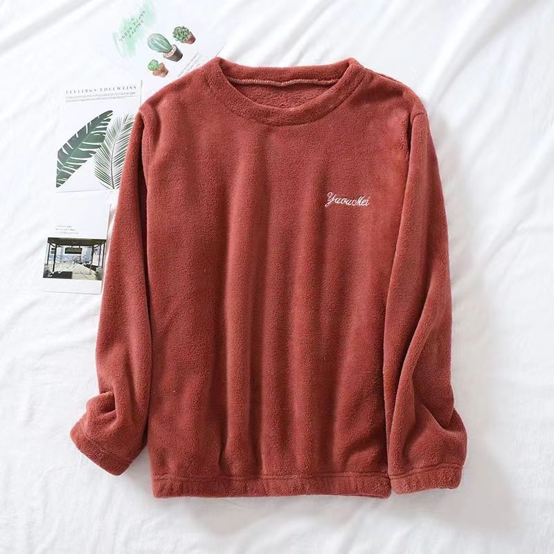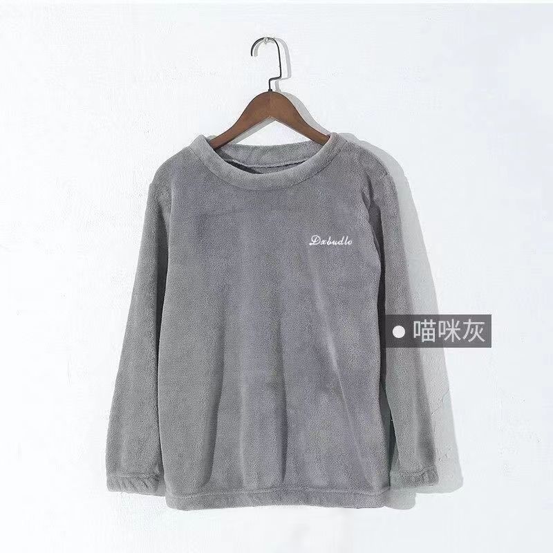 산호 벨벳 여성 겨울 의류 남성 커플용 플리스 안감 따뜻한 플란넬 홈웨어 잠옷 상의 단품 두꺼운 보온