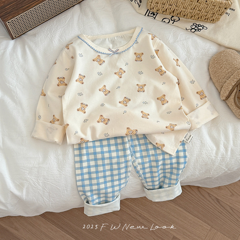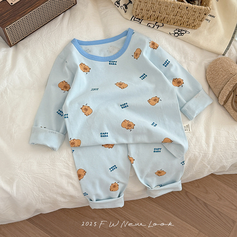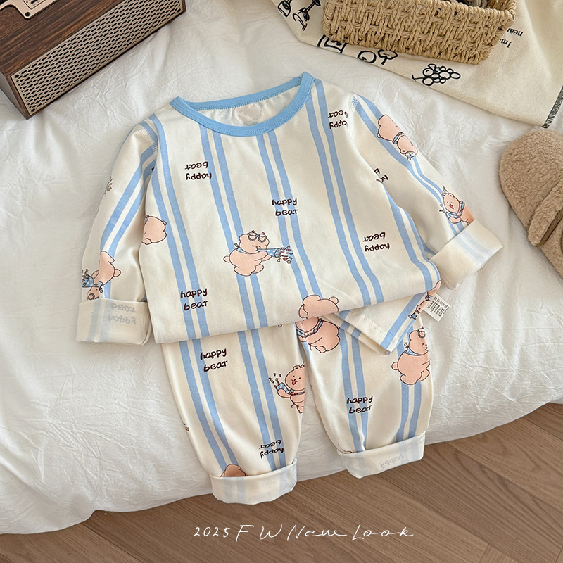 아이들의 뼈없는 가을 옷 긴 존스 한국 스타일 가정 옷 세트 봄과 가을 겨울 열 속옷 아기 소년과 소녀 잠옷스토어 가기