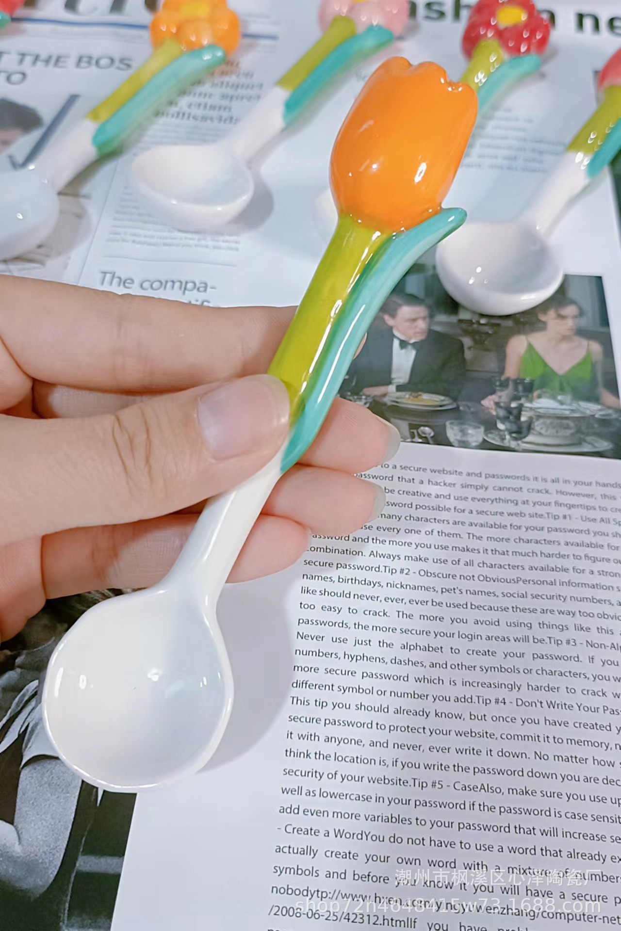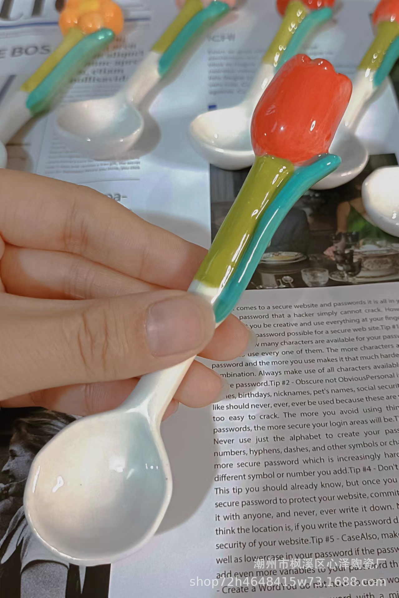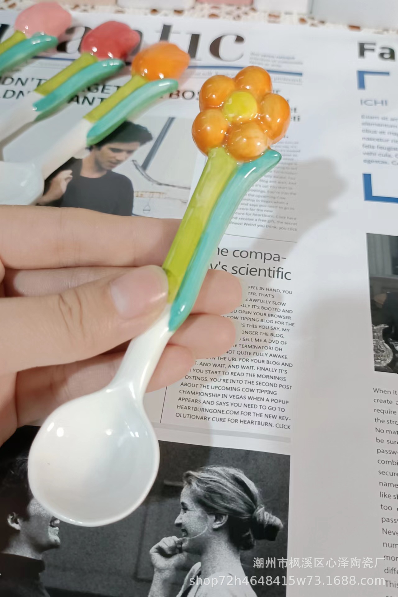 높은 색상 값 꽃 작은 스푼 튤립 스푼 세라믹 스푼 커피 스푼 볶음 스틱 스푼 쌀 스푼 디저트 스푼 도매