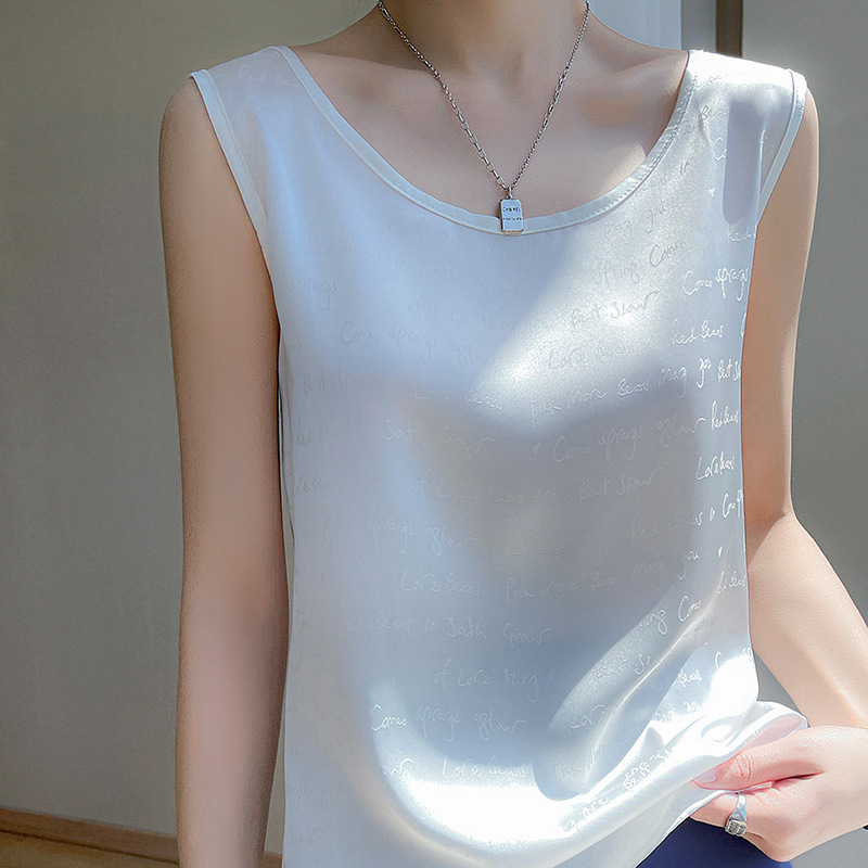 2022 실크 캐미솔 여성의 느슨한 라운드 넥 뽕나무 실크 자카드 겉옷 플러스 사이즈 민소매 티셔츠 내부 탑스토어 가기