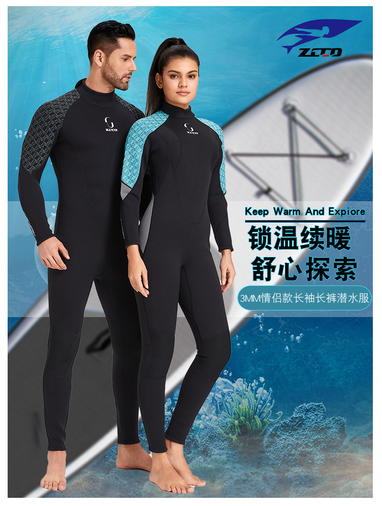 ZCCO 새로운 3mm 다이빙 세트 남자의 긴 소매 여자의 두꺼운 따뜻한 수영복 무료 스노클링 서핑 해파리 세트스토어 가기