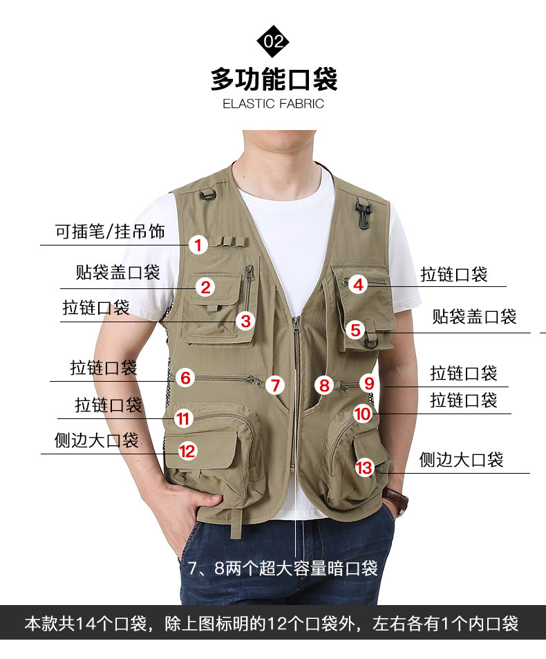 工装马甲男春秋多口袋摄影师钓鱼战术机能背心工作服马夹外套