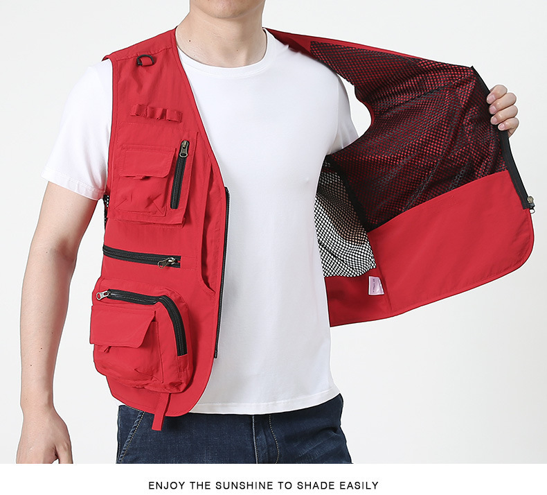 작업복 조끼 남성용 봄과 가을 멀티 포켓 사진가 낚시 전술 기능 조끼 작업복 조끼 재킷