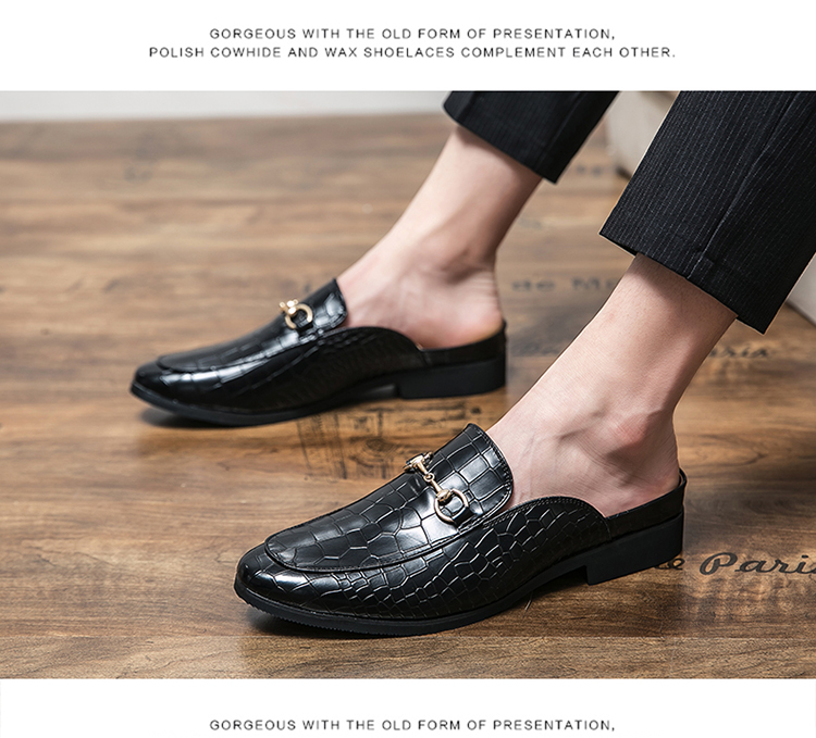 厂家直供夏季包头半拖鞋男鞋鳄鱼纹防滑英伦懒人鞋休闲鞋个性皮鞋