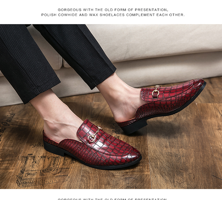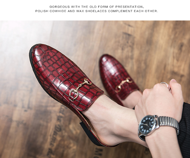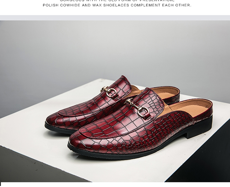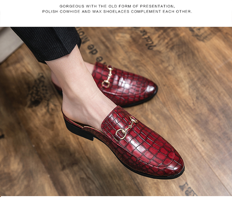 여름 47 플러스 사이즈 48 폐쇄 발가락 반 슬리퍼 남성 신발 악어 패턴 미끄럼 방지 영국 게으른 신발 캐주얼 신발 개인 가죽 신발