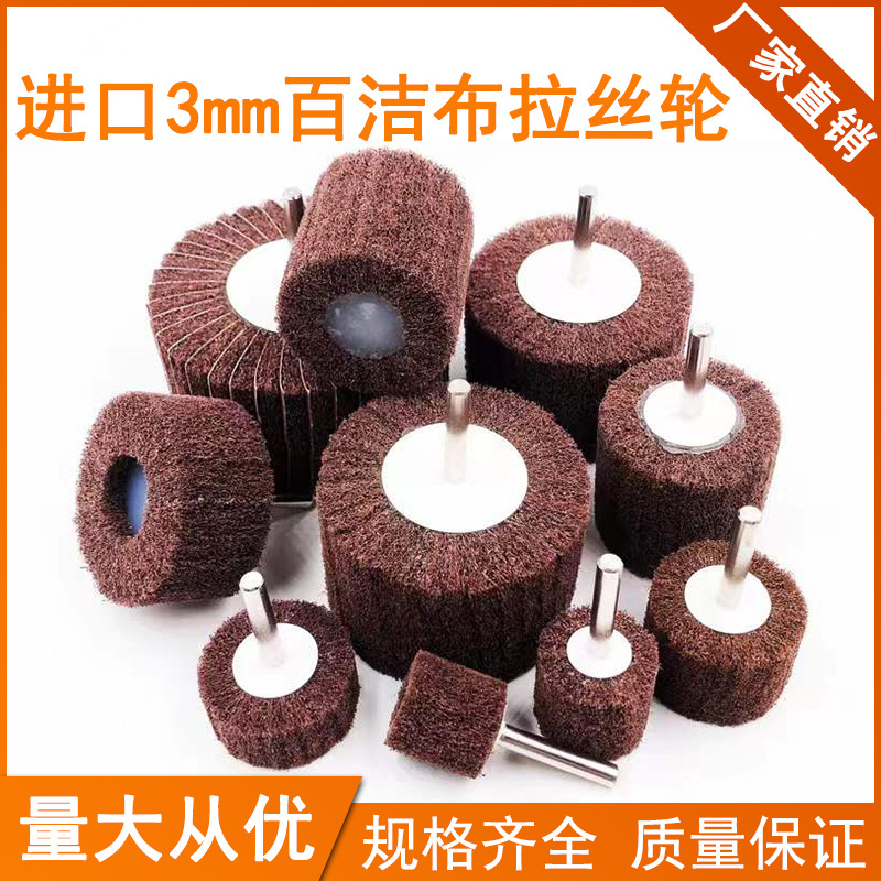 3M 수세미 휠 핸들 드로잉 휠 피스 연마 클립이있는 스테인레스 스틸 표면 처리 에머리 휠 목공 연삭 도구스토어 가기