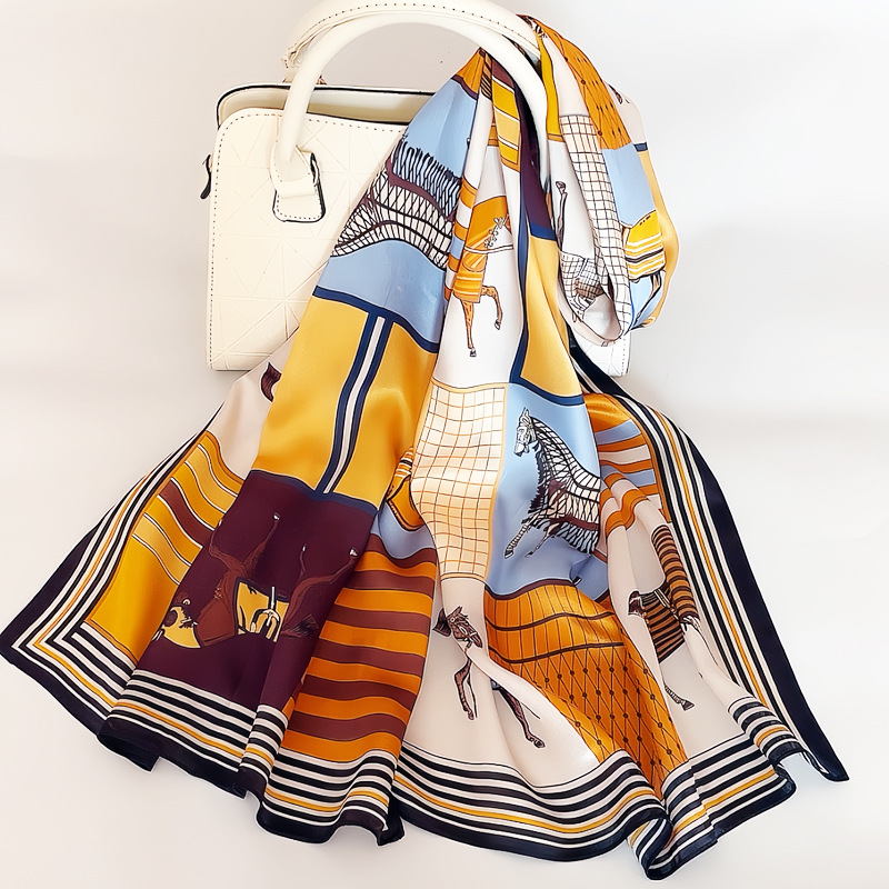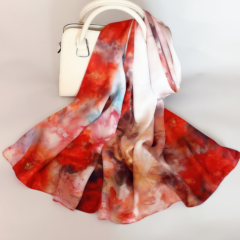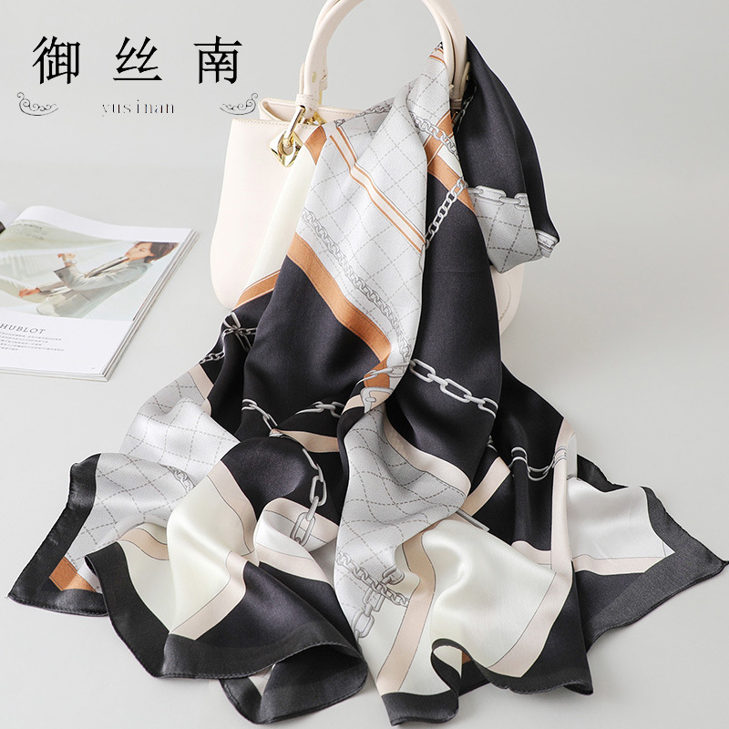 항저우 실크 실크 스카프 여성의 봄과 가을 새로운 중국 스타일 100 뽕나무 실크 새틴 롱 스카프 크로스 보더 도매스토어 가기